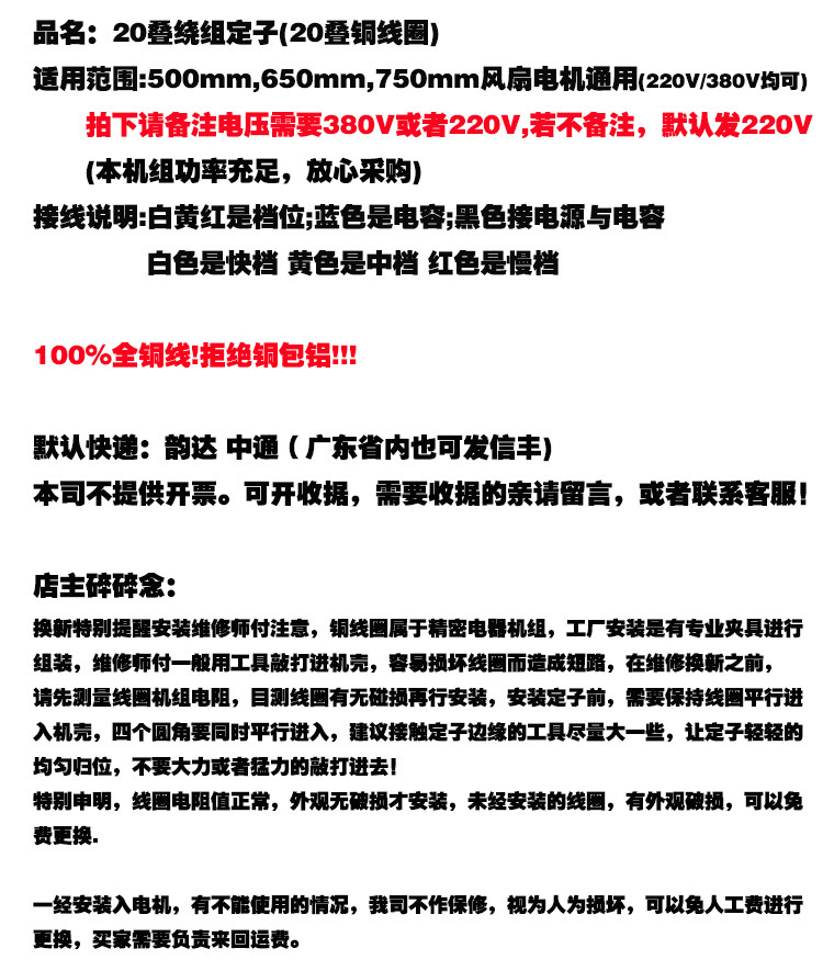 Industrial fan coil winding stator pure copper