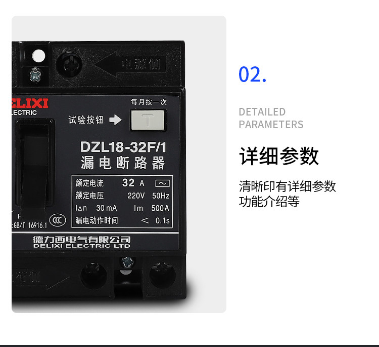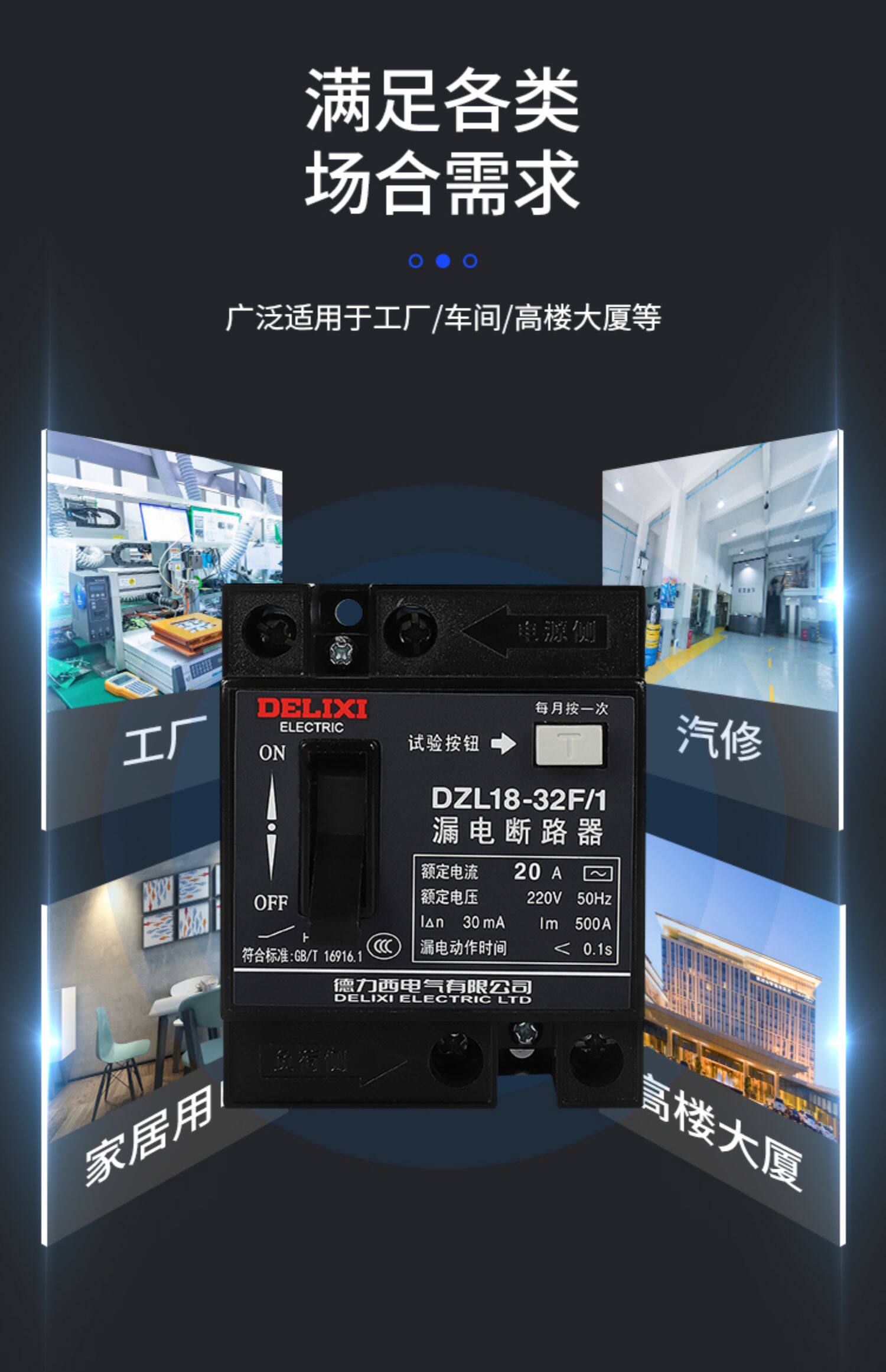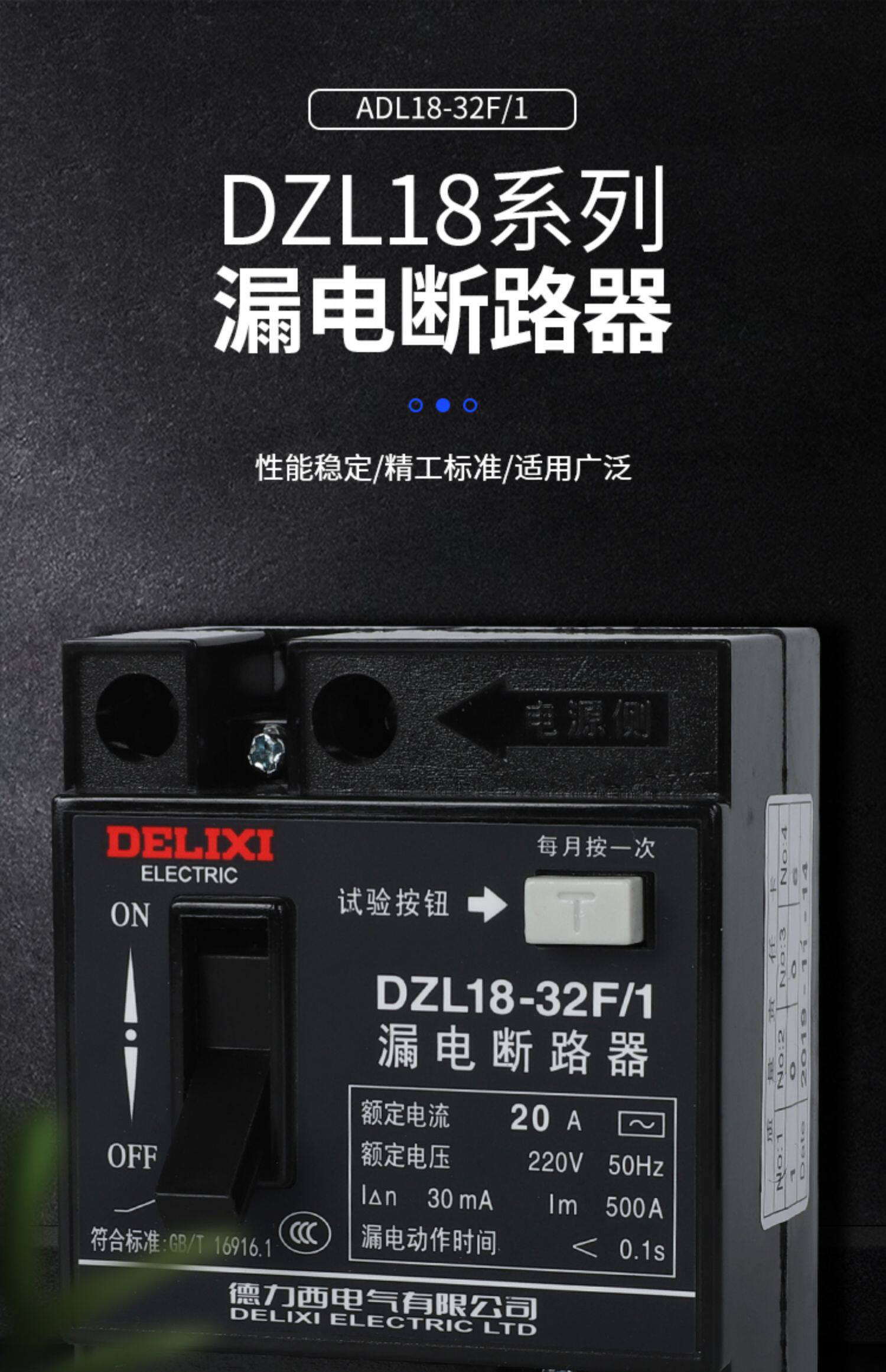 Delixi Dzl18-32F/1 32A 20A Household Leakage Circuit Breaker, Leakage Protector, Single-Button Standard