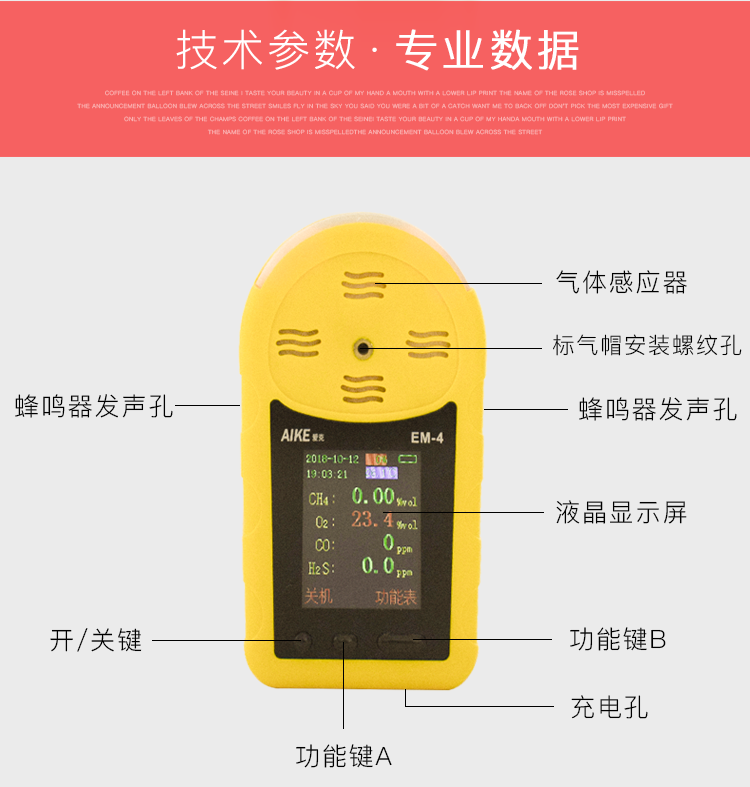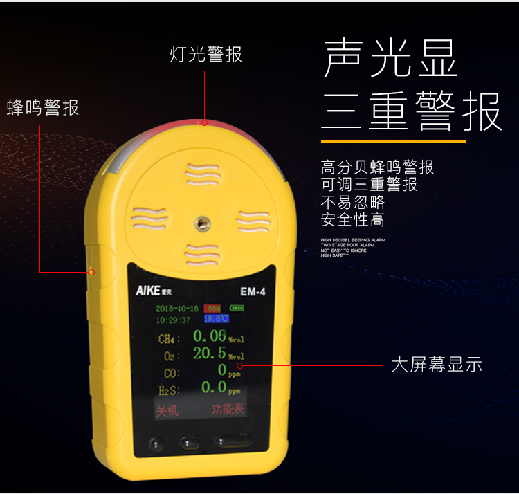 Aike Australia's New Instrument Em-4 Gas Meter, Toxic and Harmful Gas Detector, Four-In-One Explosion-Proof Alarm