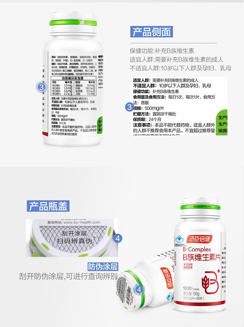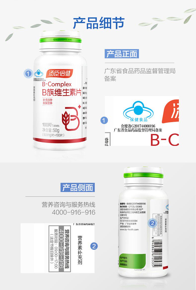 Tomson By-Health brand vitamin B complex tablets 500mg/tablet*100 tablets B1B2B6B12 vitamin BVB