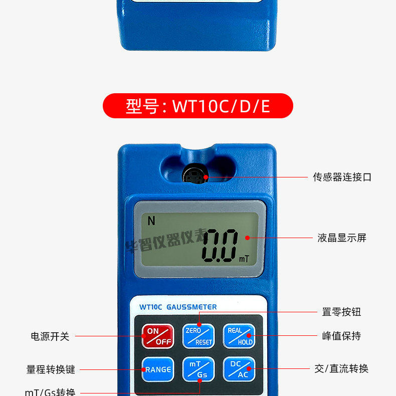 Color Classification Wt10B Standard (0-200Mt),Wt10C (Ac, Dc Magnetic Field),Wt10D (Ac, Dc) Automatic Shutdown,Wt10C Single Independent Probe,WT10E(0-6mt),Wt10D Individual Probe,Wt10F Special for Measuring Magnetic Field Space