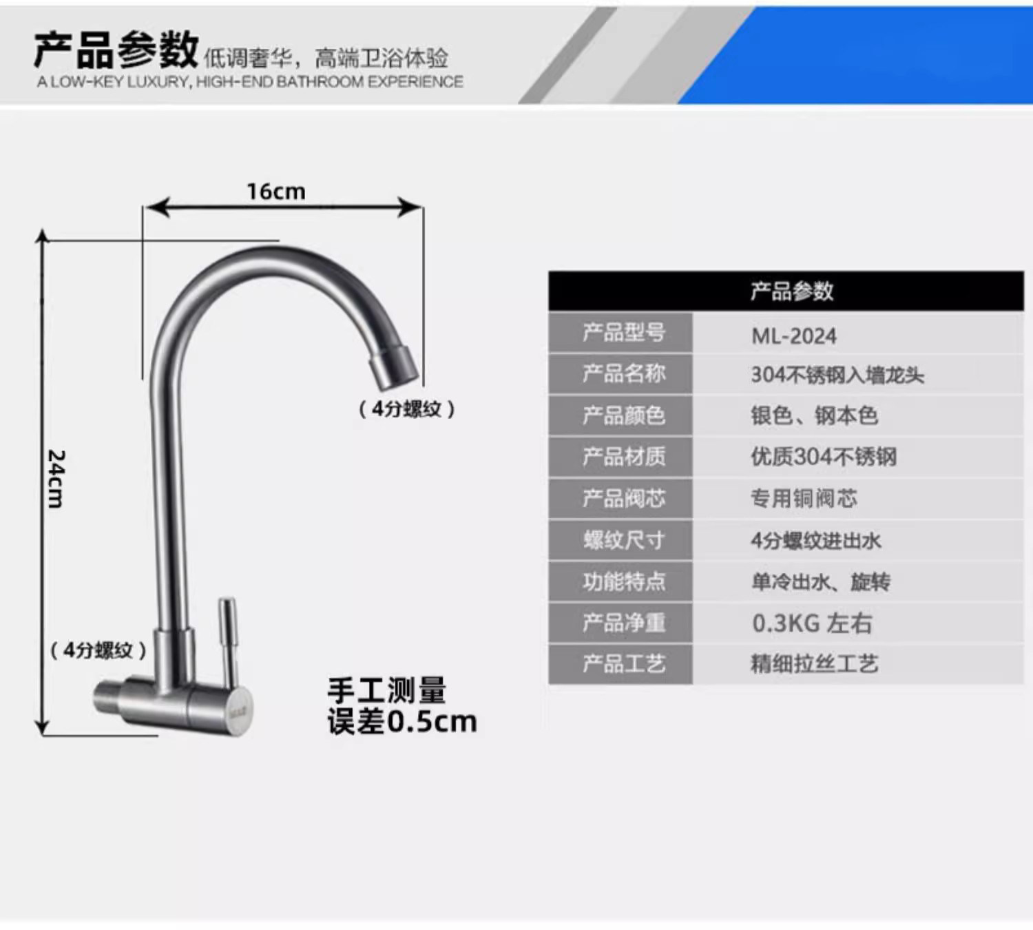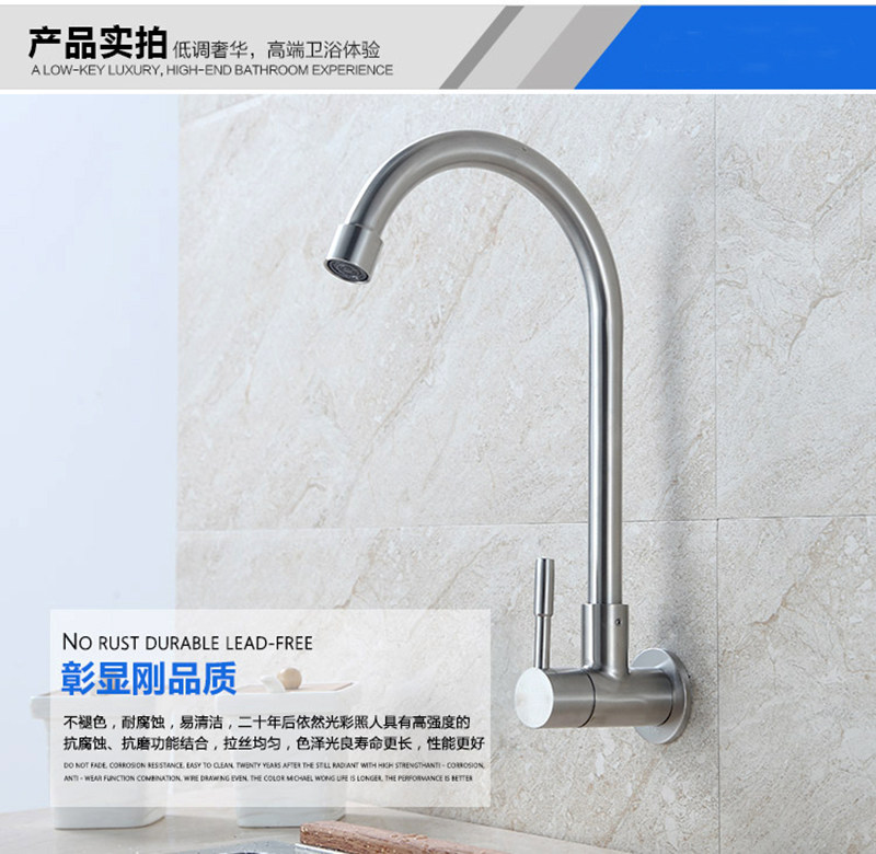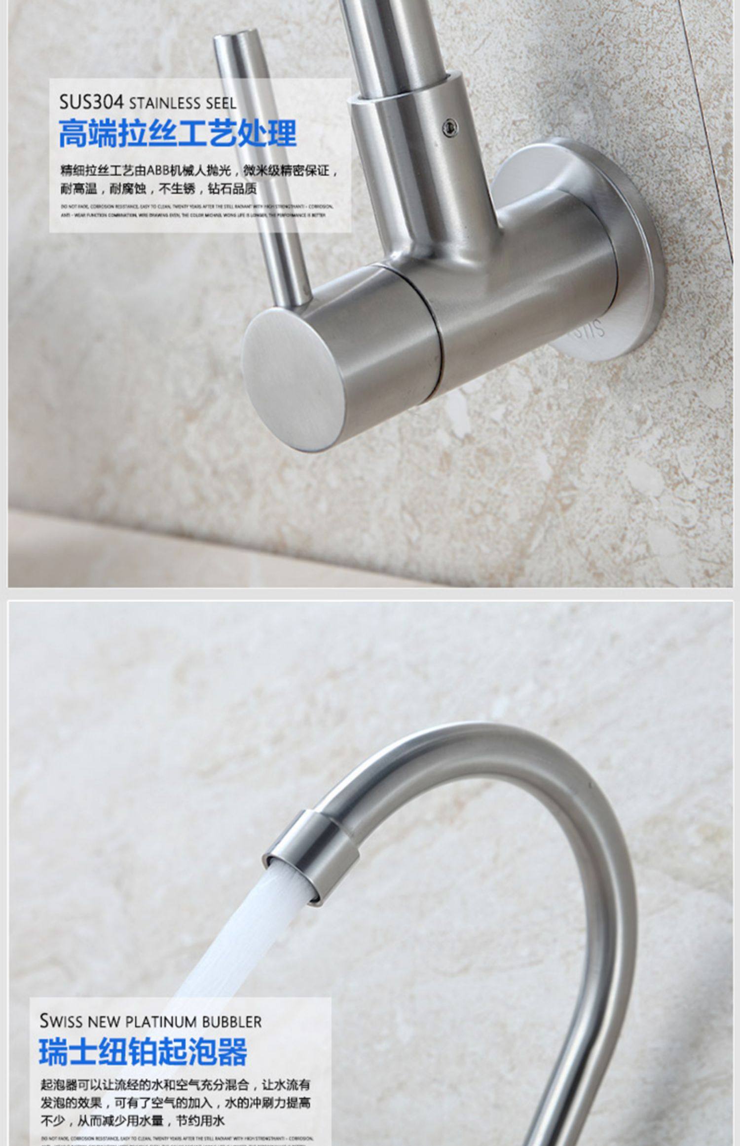 304 Stainless Steel Wall-Mounted Faucet Single Cold Water Kitchen Faucet Balcony Sink Laundry Sink Water Basin