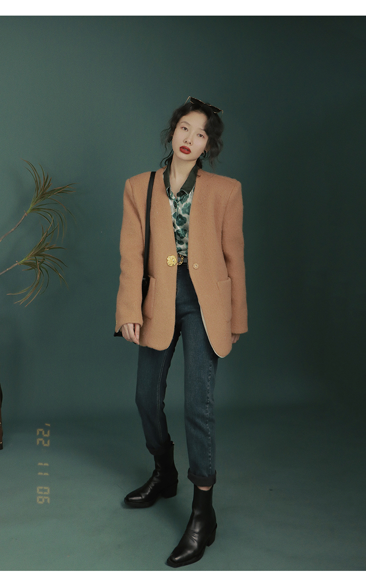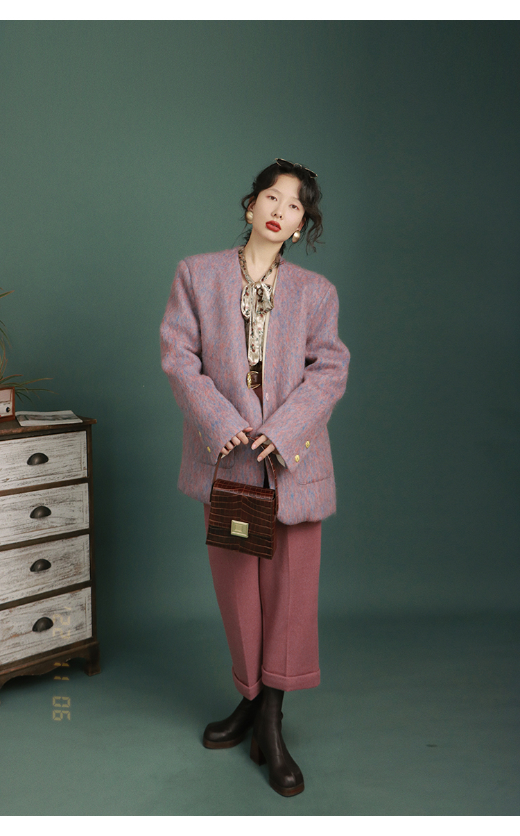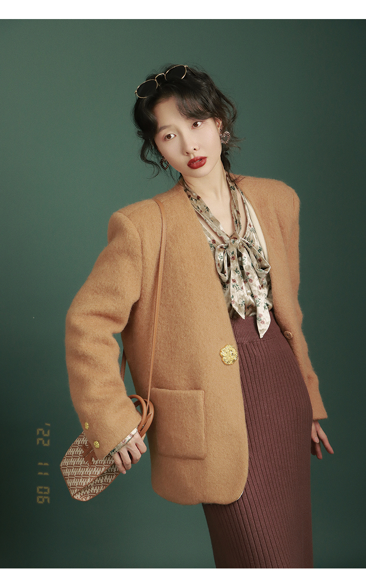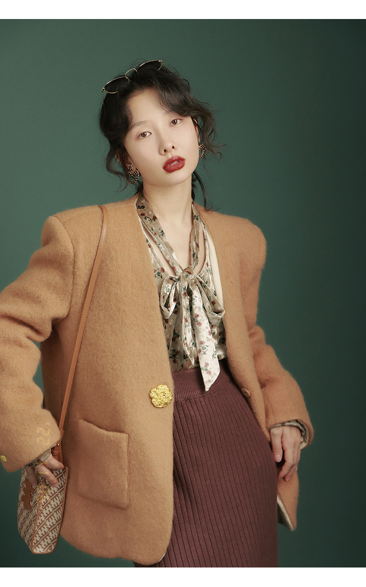[in Stock] Ivy Yang Vintage Short Woolen Coat for Women, High-End Elegant Thick Woolen Jacket Top