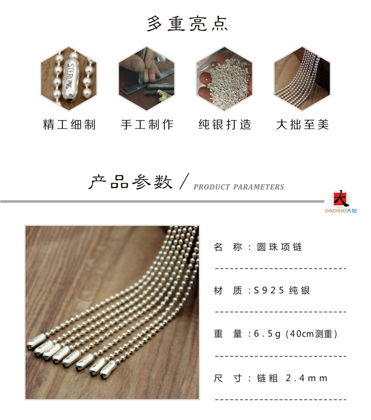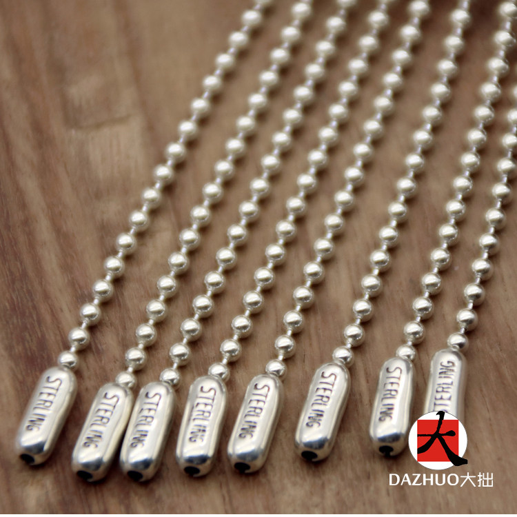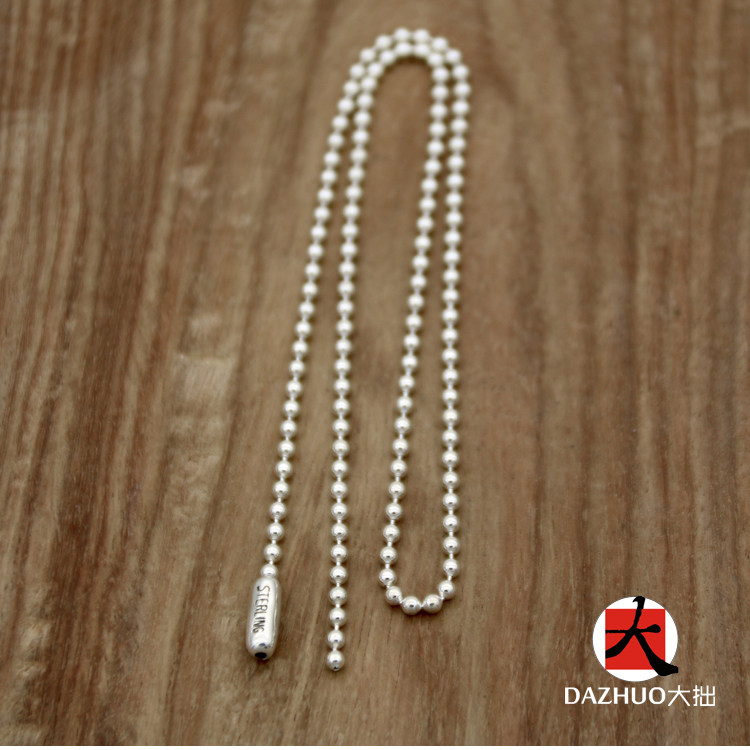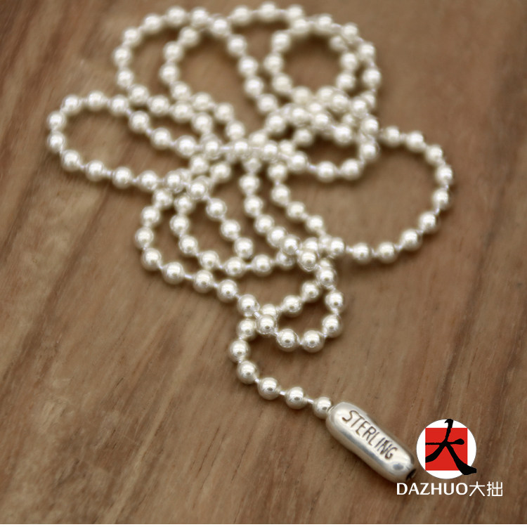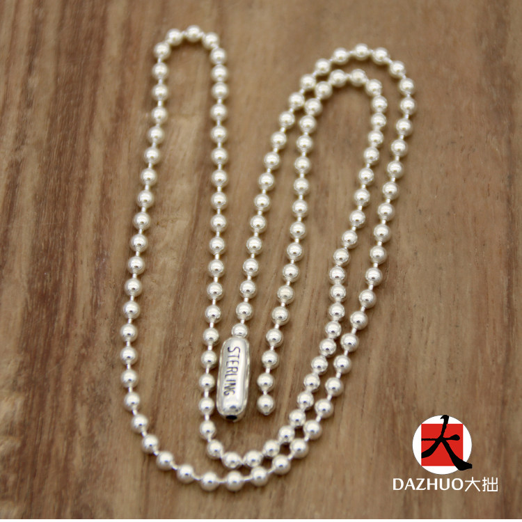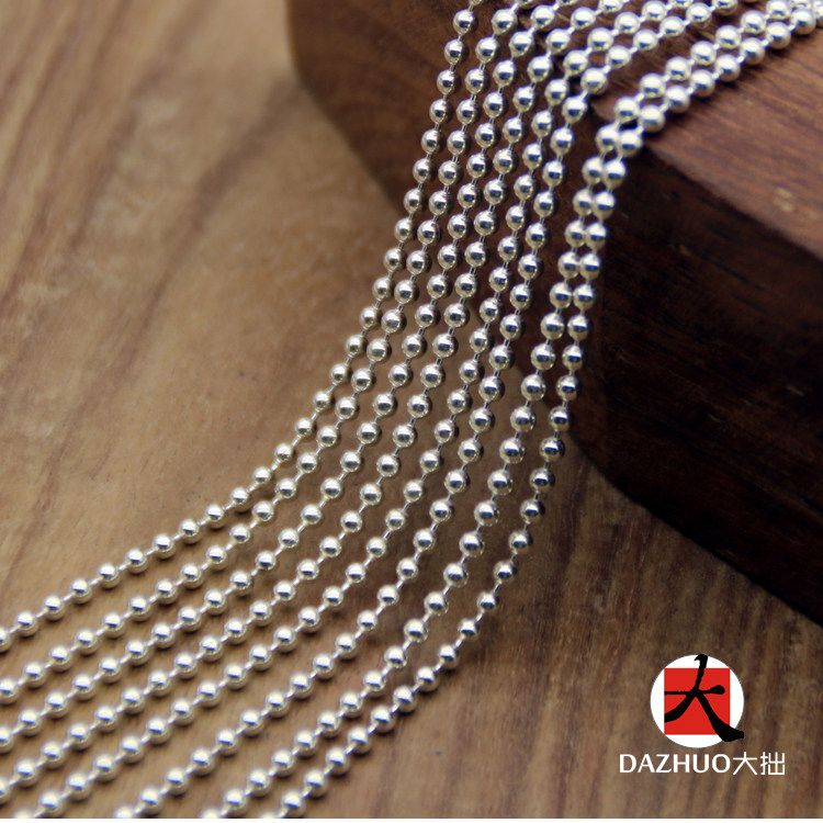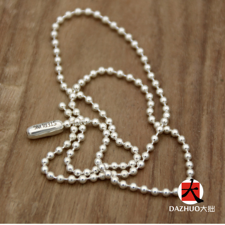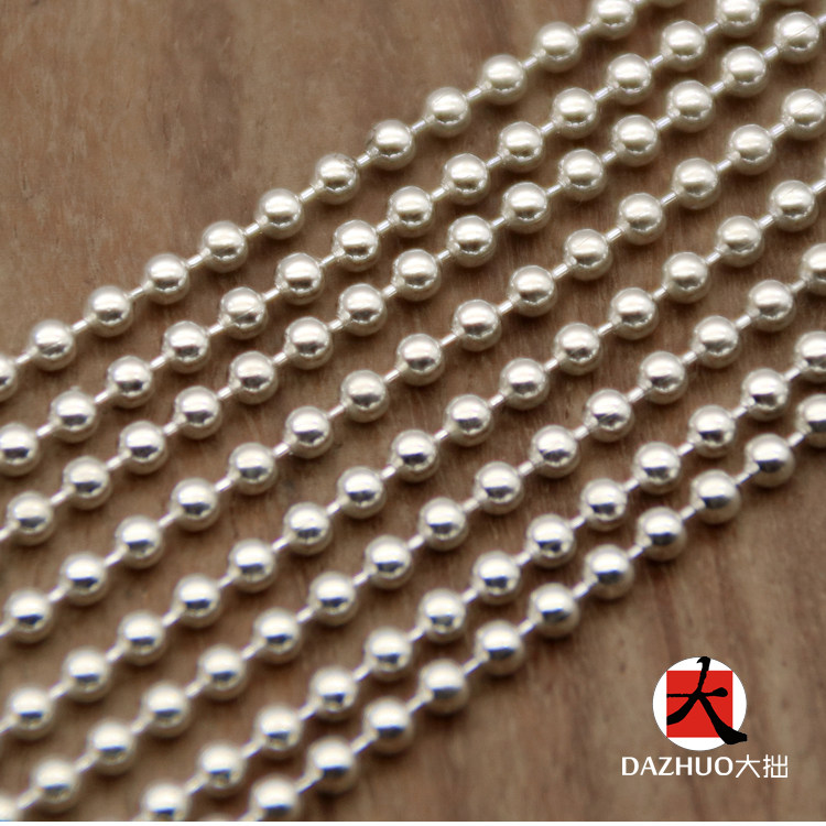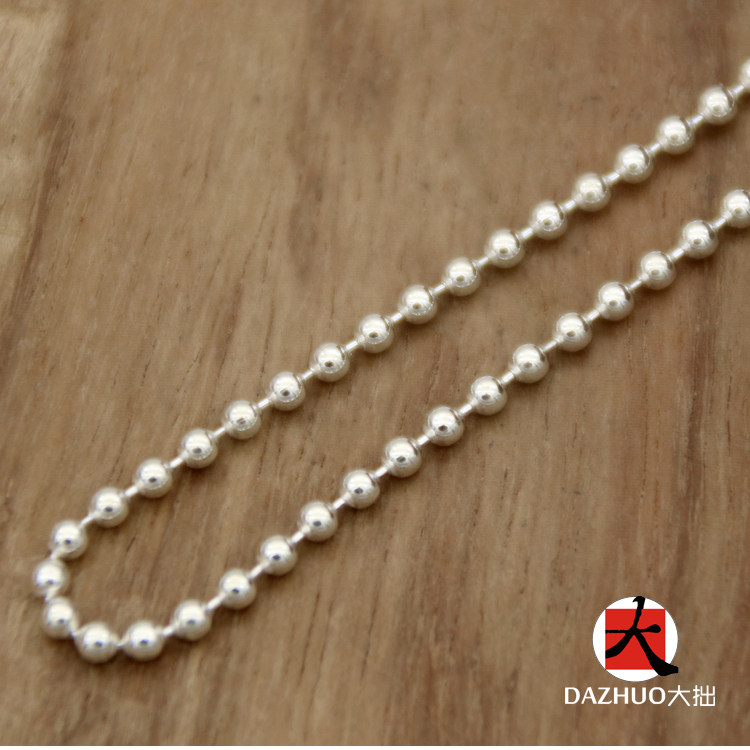 Large bead chain necklace 925 sterling silver men's and women's plain chain single chain 2.4mm ball chain long sweater chain trendy