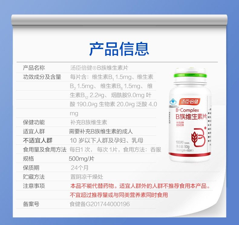 Tomson By-Health brand vitamin B tablets 100 tablets * 2 bottles, a total of 200 tablets B1B2B6B12 adult supplement vb
