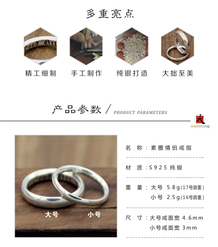 Da Zhuo good art goodart thick ring ring couple ring women's 925 sterling silver men's simple closed ring ring