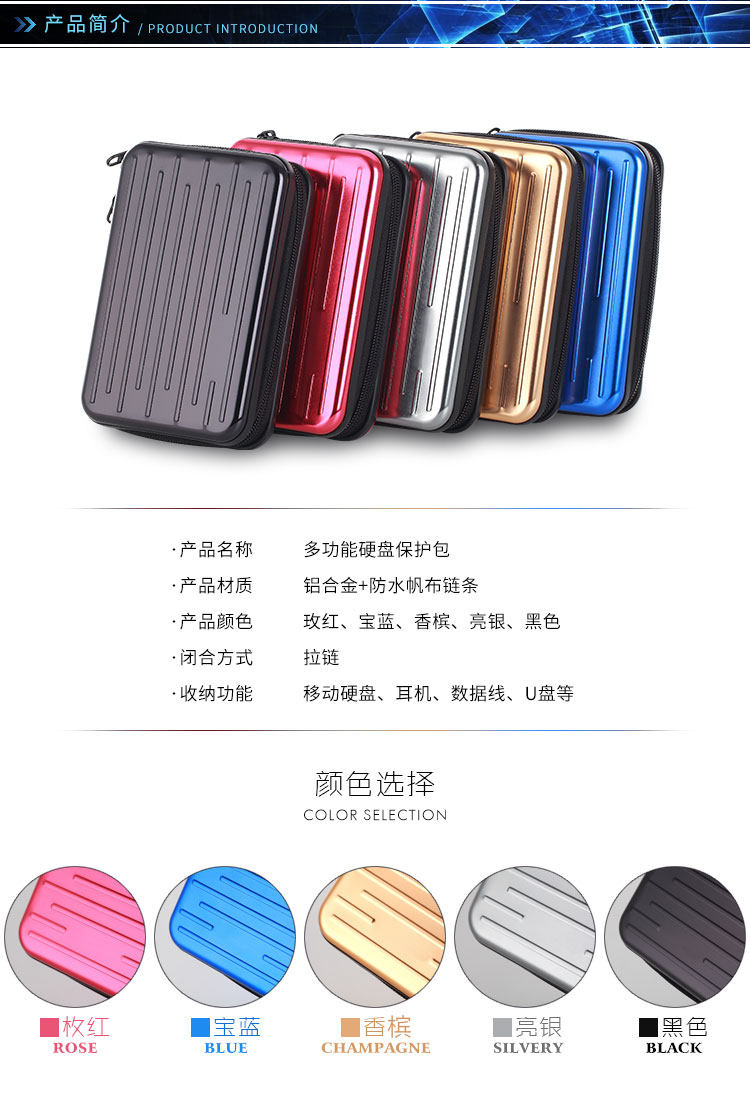 Metal Mobile Hard Drive Case, Waterproof and Drop-Proof, Diamond Case, 2.5inch Hard Shell Case, Protective Case, Camera Digital Storage Case