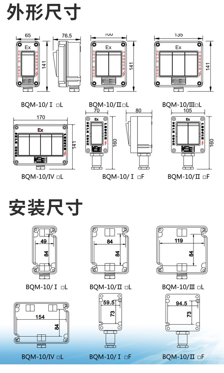 National Standard Industrial Ex Explosion-Proof Anti-Corrosion Fire Lighting 220V10A One, Two, Three, Dual Control Wall Switch Bqm-10