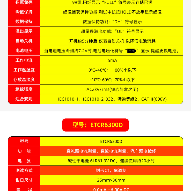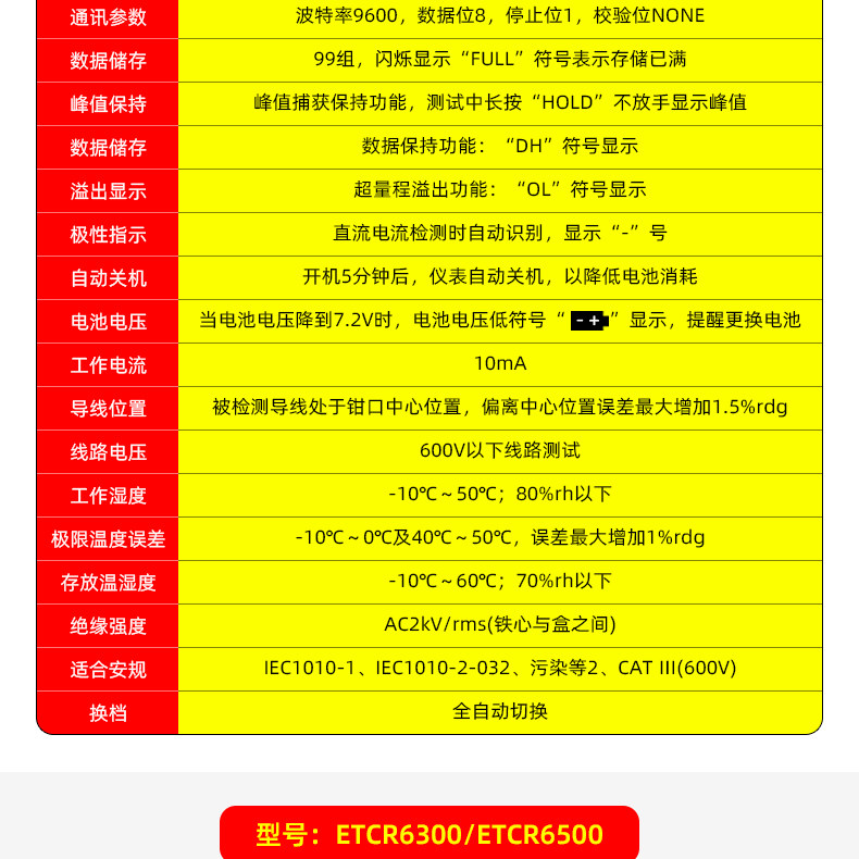 Color Classification Etcr6500 Ac Current/Leakage Current 300A,Etcr6800D Ac and Dc Current 1500/2000A,Etcr6300 Ac Current/Leakage Current 60A,Etcr6600 Ac Current/Leakage Current 600A,Etcr6300D Dc Current/Leakage Current 6A,Etcr6000 Ac/Dc Current/Leakage Current 60A,Etcr6800 Ac Current / Leakage Current 1200A,Etcr6100 Ac/Dc Current 1000A,Etcr6000B Ac/Dc Current/Leakage Current 60A,Etcr6900 Ac Current/Leakage Current 9999A,Etcr6200 Ac/Dc Current/Leakage Current 60A