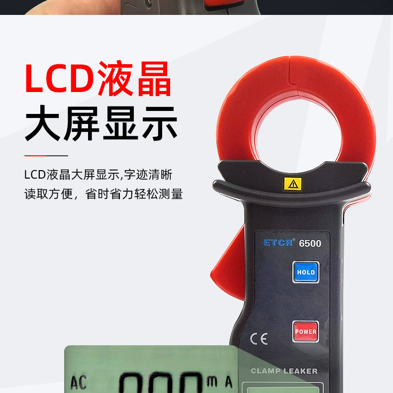 Etcr6800D Large-Caliber Clamp-On Ammeter Automotive Ac/Dc Leakage Current Tester Clamp Meter