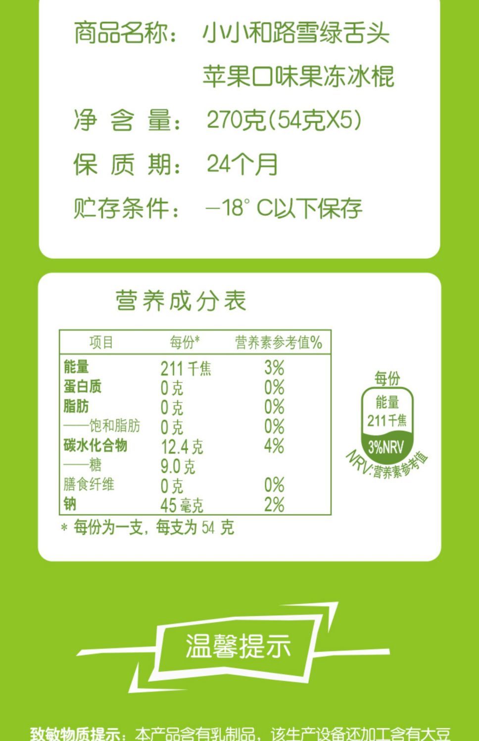 Helu xuemai kushi classic apple flavor green tongue ice cream jelly popsicle internet celebrity ice cream
