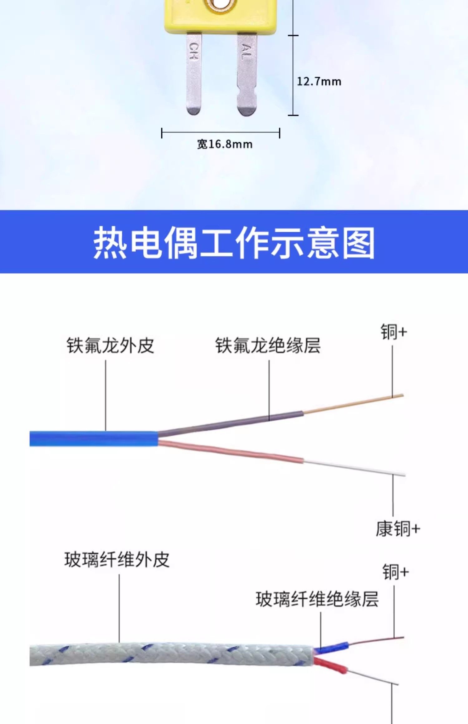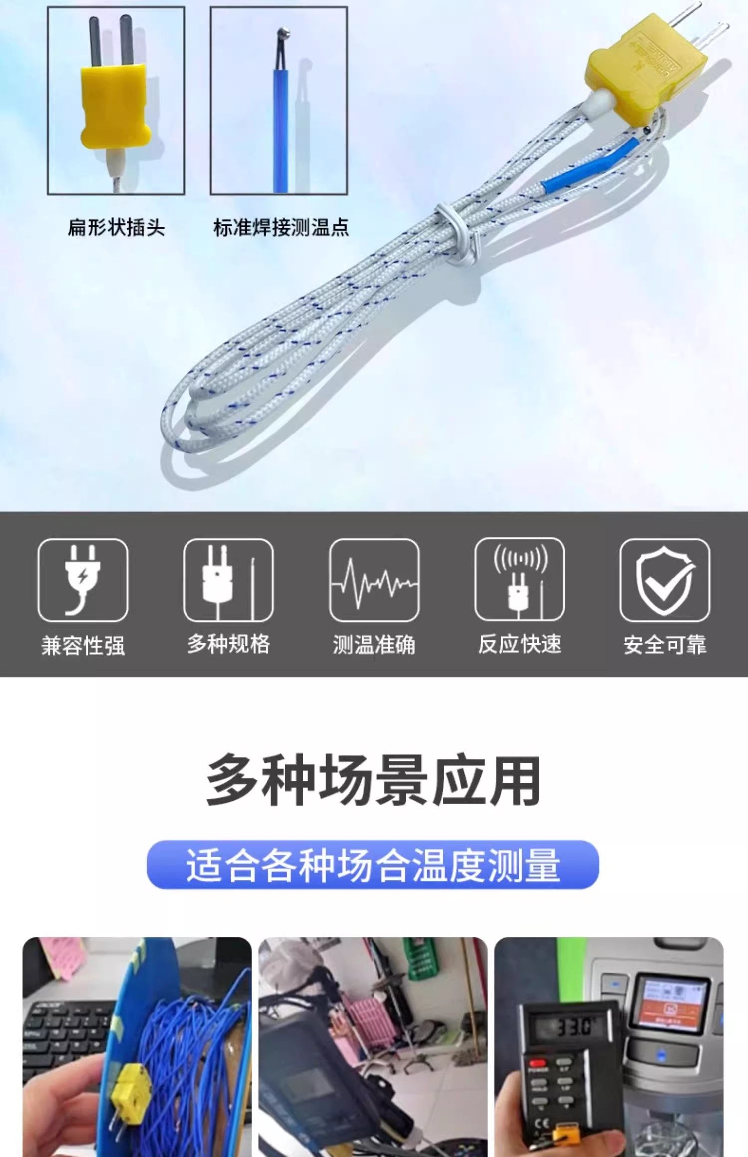 K-Type Thermocouple Line Thermometer Temperature Measurement Line Thermocouple Probe Liquid Thermometer Metal Probe