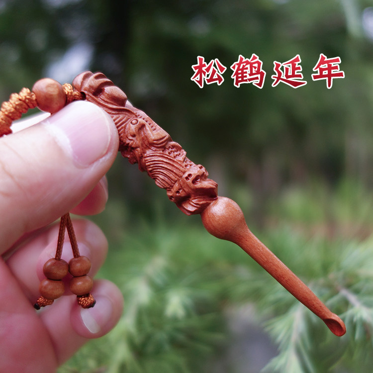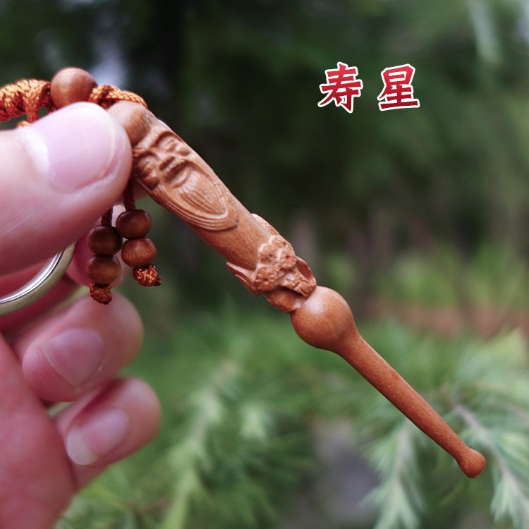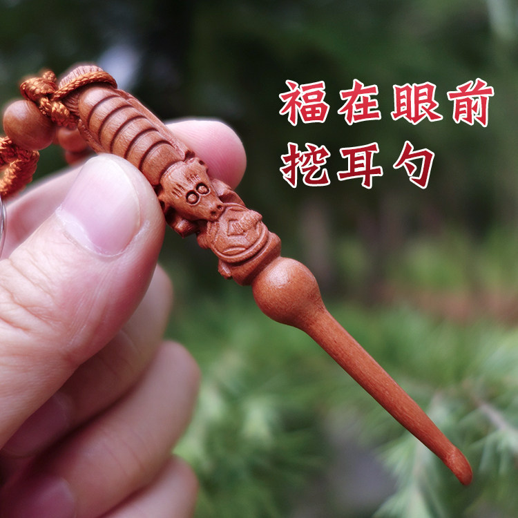 Peach Wood Hand-Carved Longevity Star Ear Scoop for Adults and Kidsren Ear Scoop Keychain Pendant Earwax Artifact Ear Picking