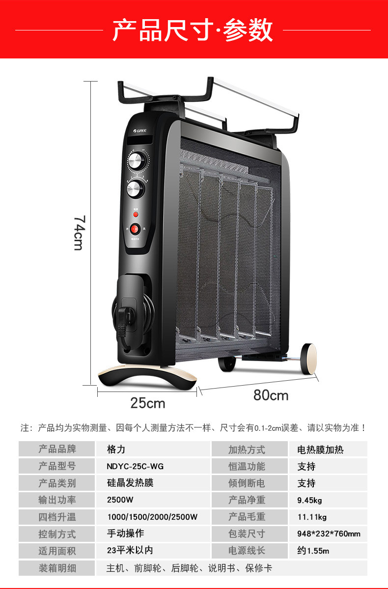 Gree Electric Heating Element, Electric Heater, Genuine Product with , Household Silicon Crystal Electric Heating Film, Energy-Saving Heater