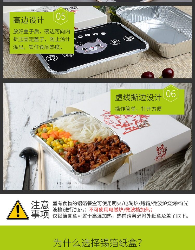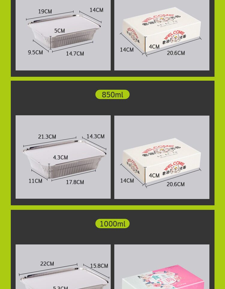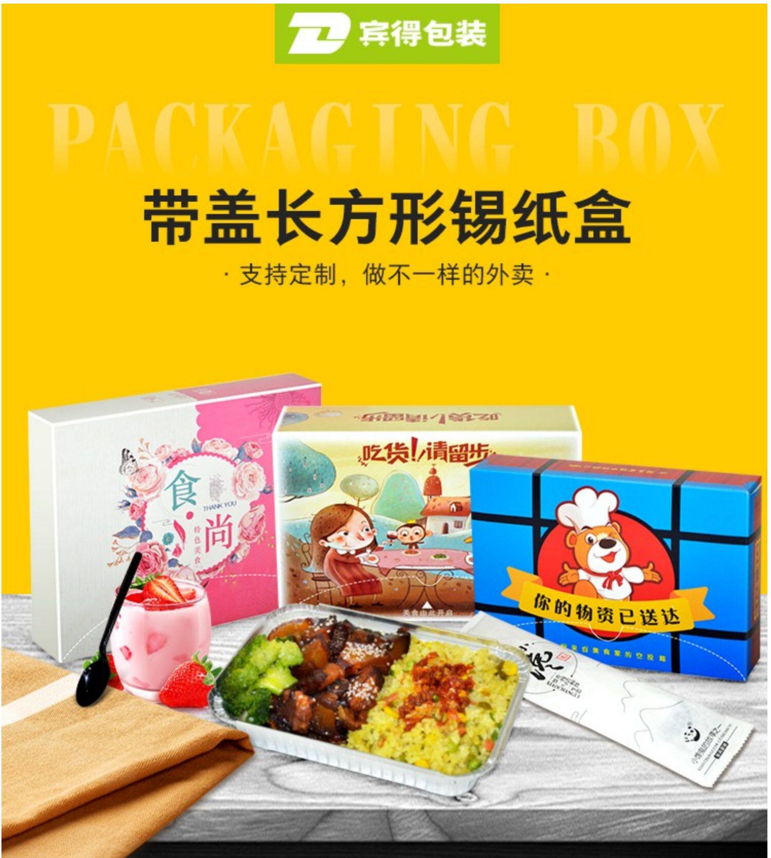 Disposable Packaging Box, Tin Foil Box, Steak Rectangular Insulated Fried Rice Light Meal Food-Grade Takeaway Bento Paper Lunch Box
