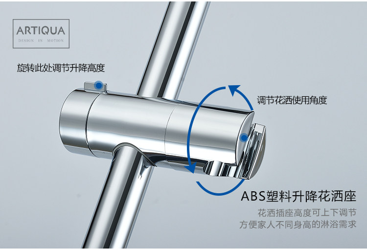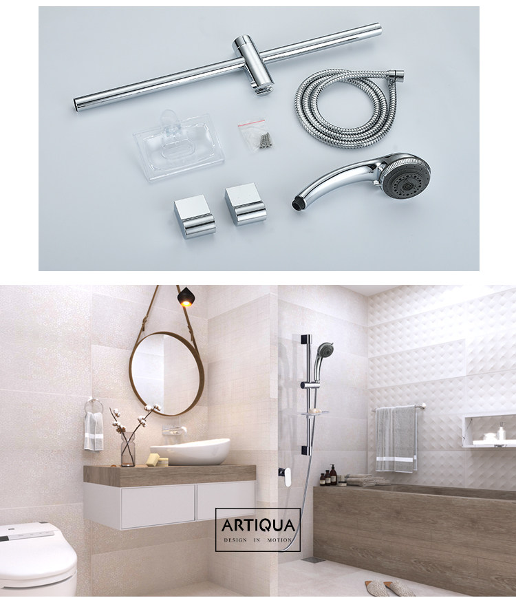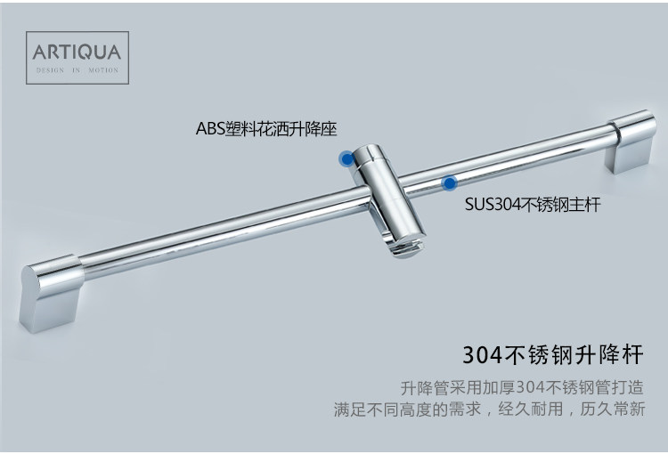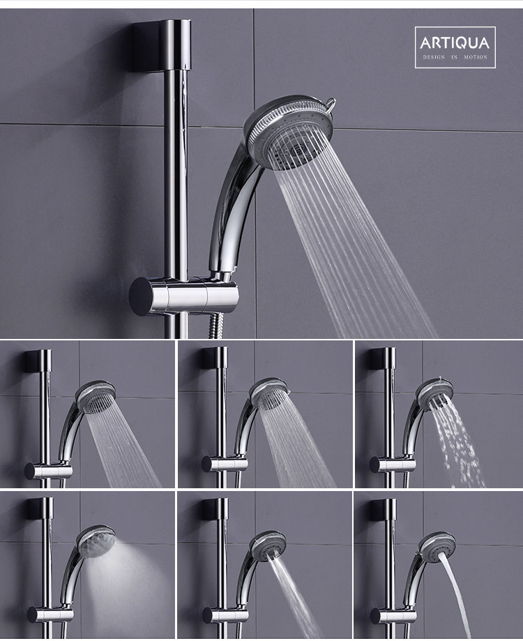 Artiqua Stainless Steel Shower Lift Rod Adjustable Bracket Lift Stand 8-Function Shower Head Set