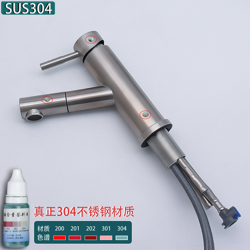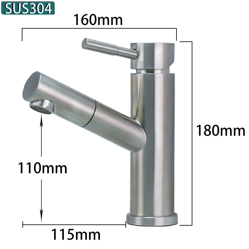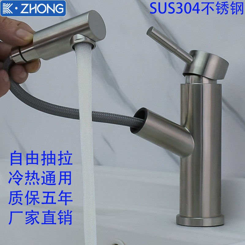 304 Stainless Steel Pull-Out Countertop Basin Faucet, Hot and Cold, Lead-Free Brushed Finish, Washbasin Faucet, Direct from Manufacturer