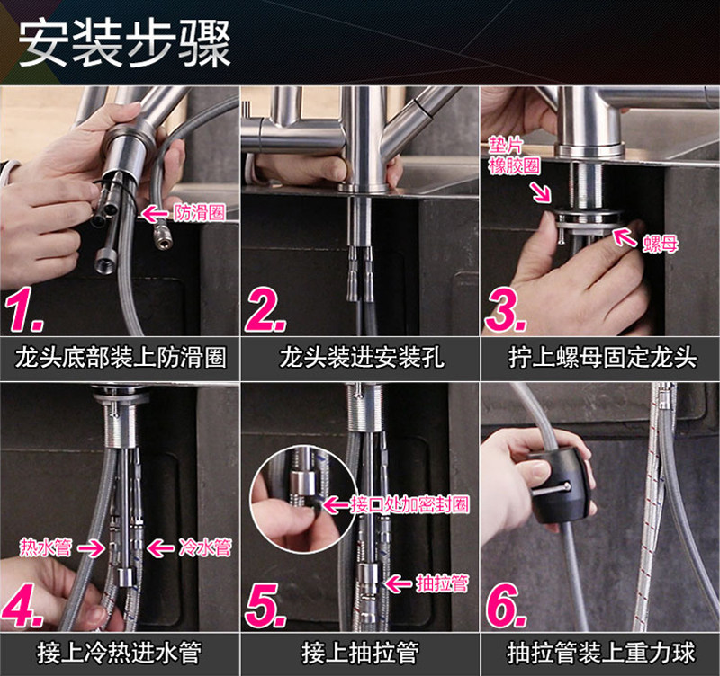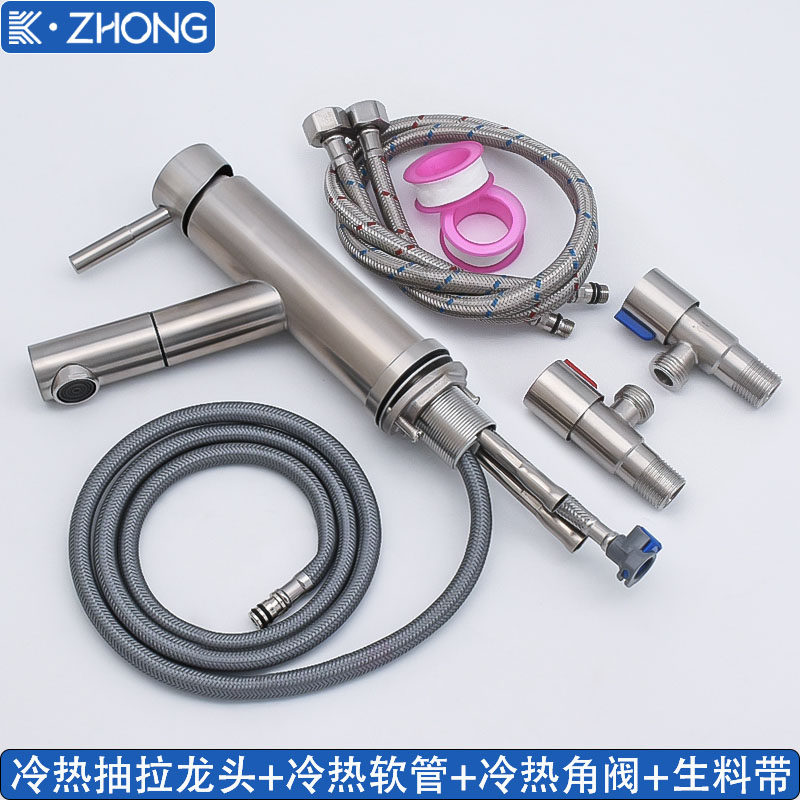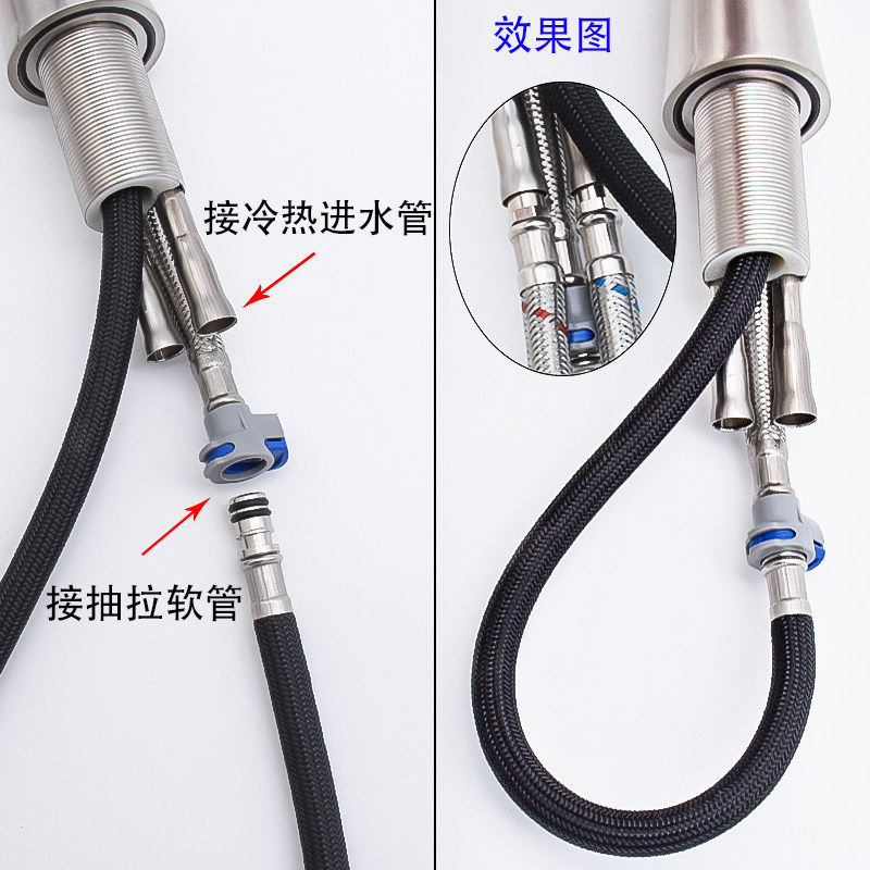 Color Classification Round Pull-Out Faucet with Raw Material Belt,Round Pull-Out Faucet with Raw Material Inlet Pipe,Round Pull-Out Faucet with Raw Material Inlet Pipe Angle Valve