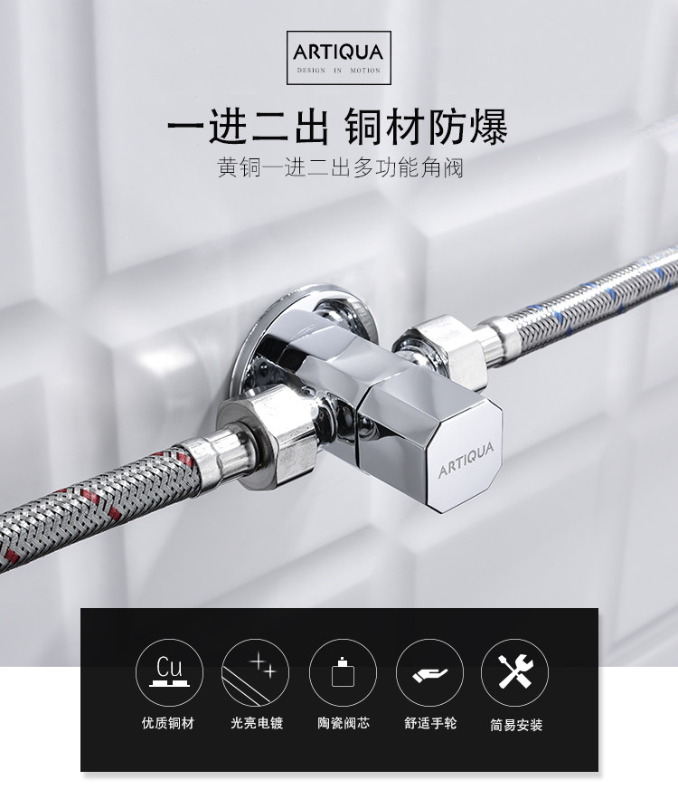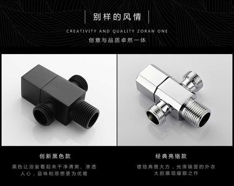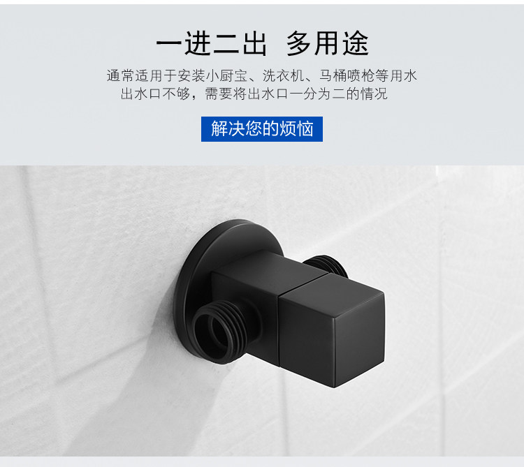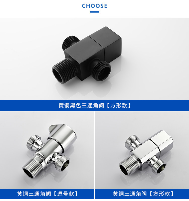 Color Classification 1 Round One-In and Two-Out Angle Valve,1 Square One-In and Two-Out Angle Valve,Black Square Angle Valve, One Inlet and Two Outlets, Quantity: 1