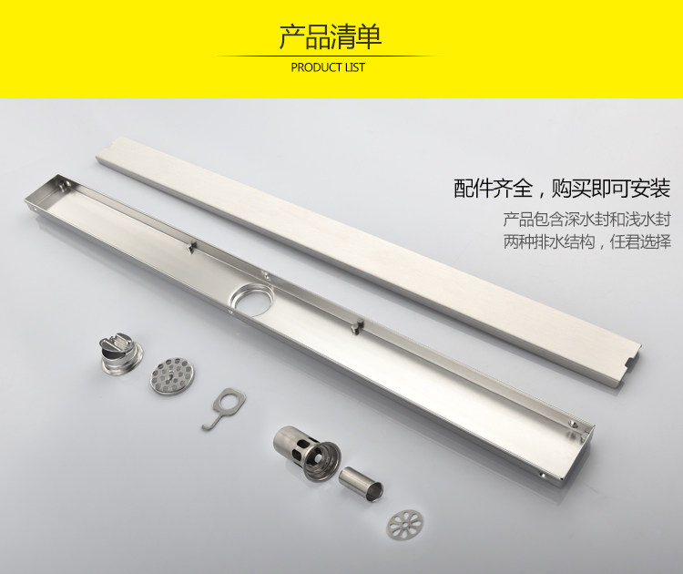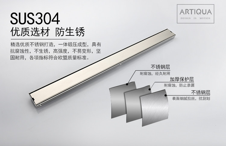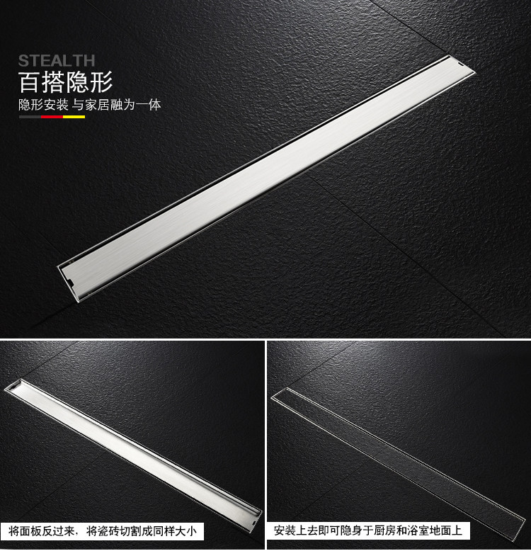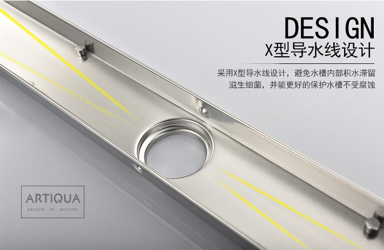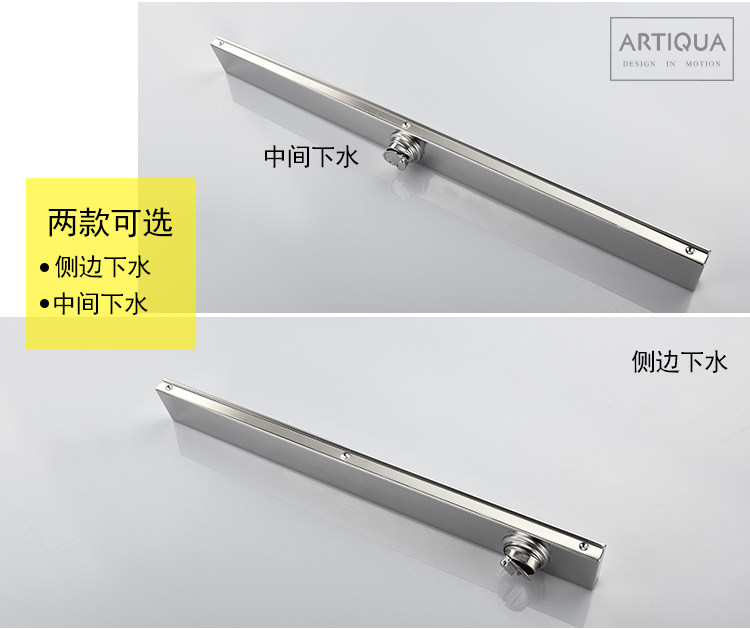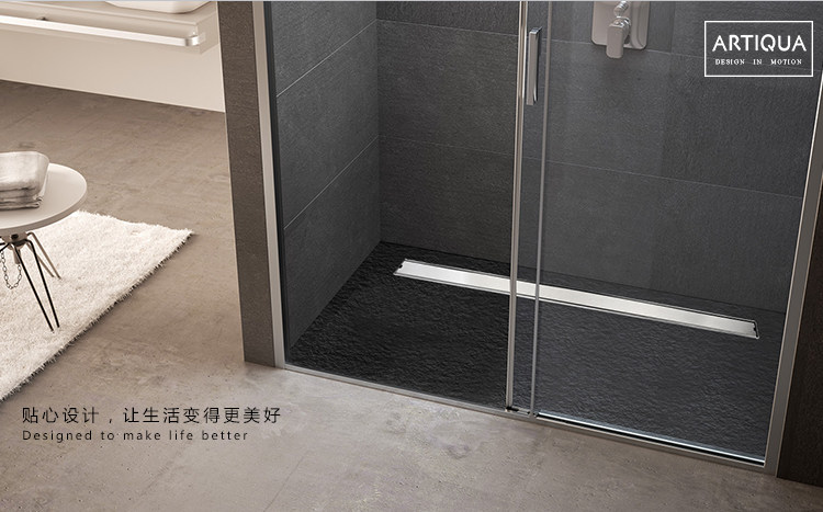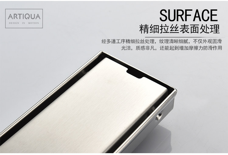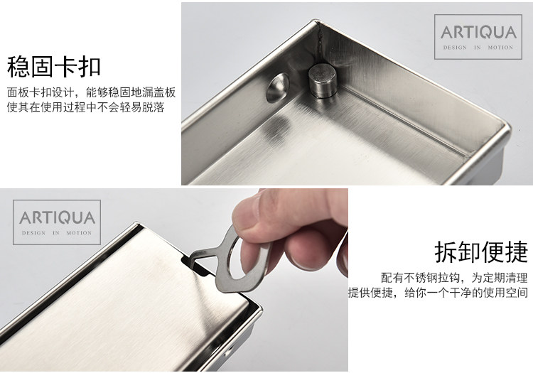 Artiqua Bathroom Shower Room Rectangular 304 Stainless Steel Anti-Odor Floor Drain Invisible Large Flow Capacity for Bathroom