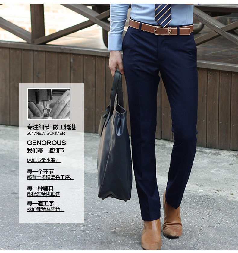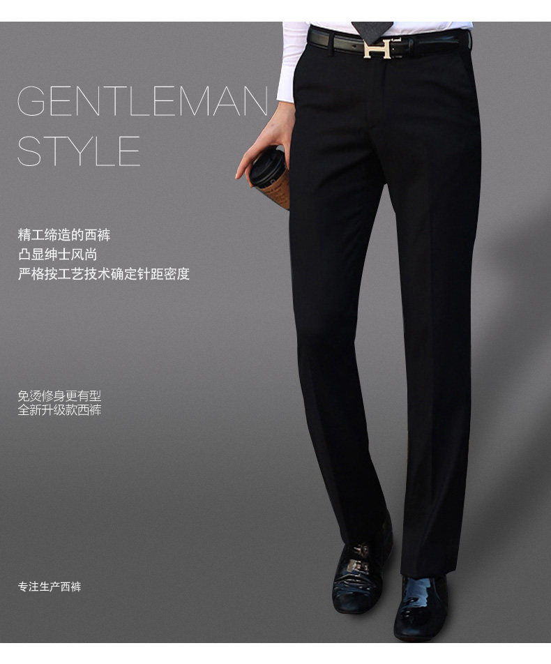 Men's trousers, business casual, professional formal trousers, men's young and middle-aged slim-fitting, iron-free black straight suit trousers