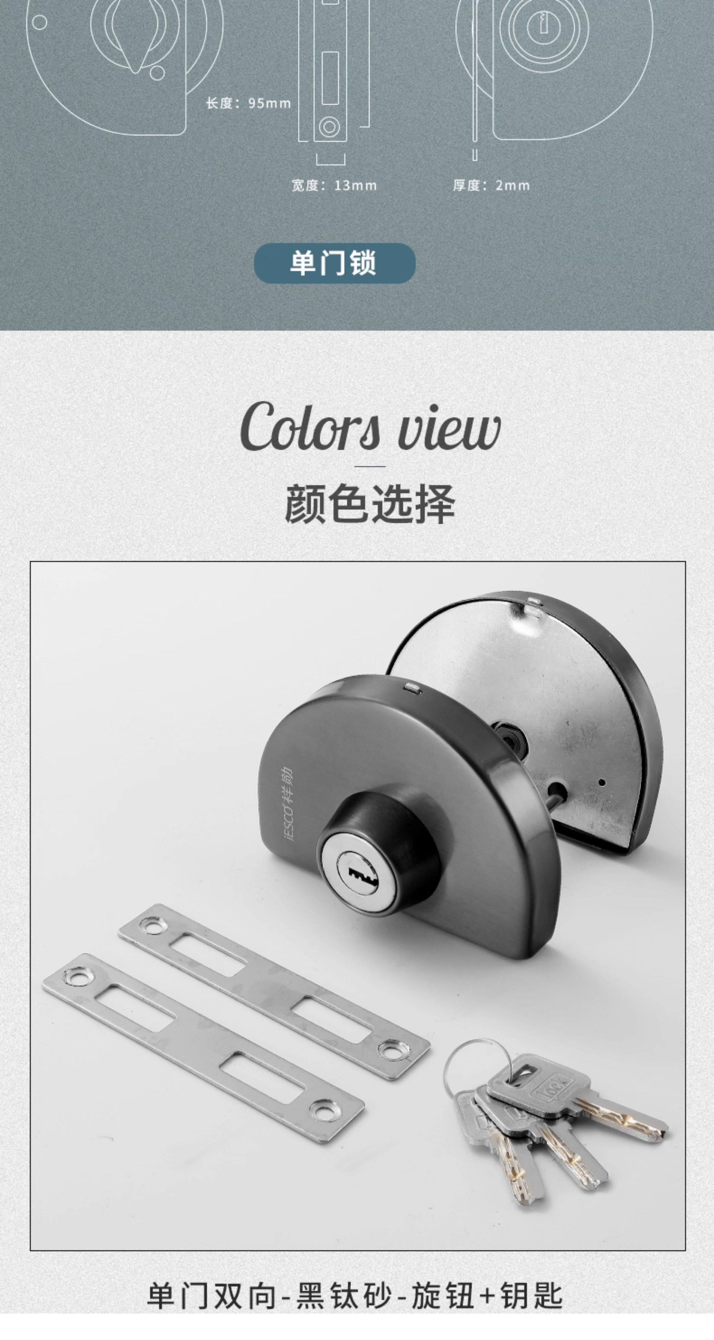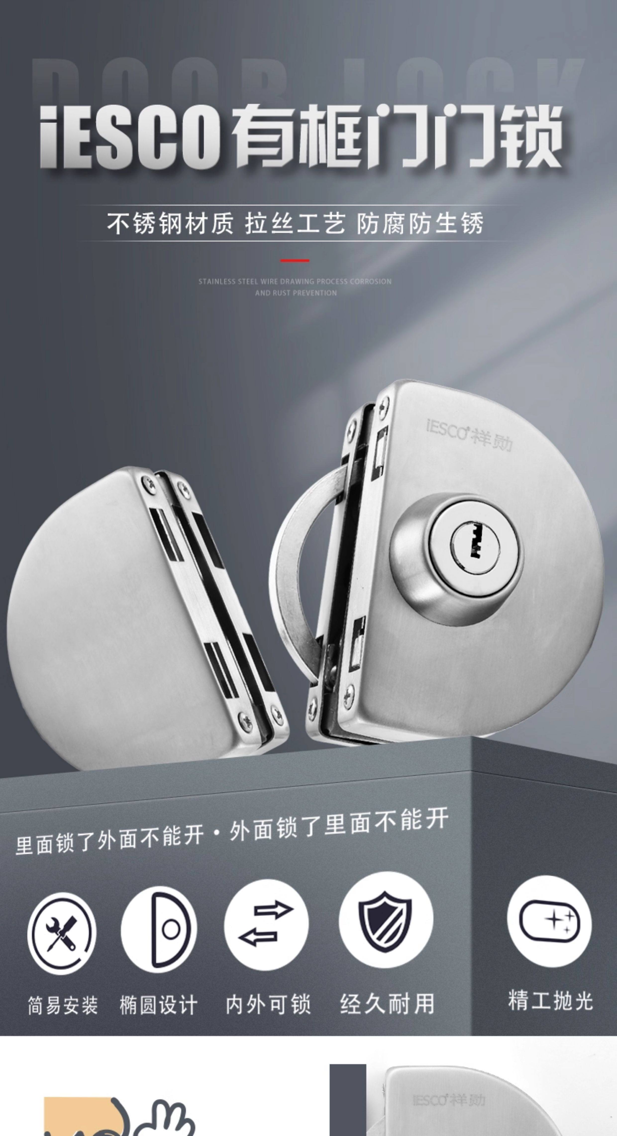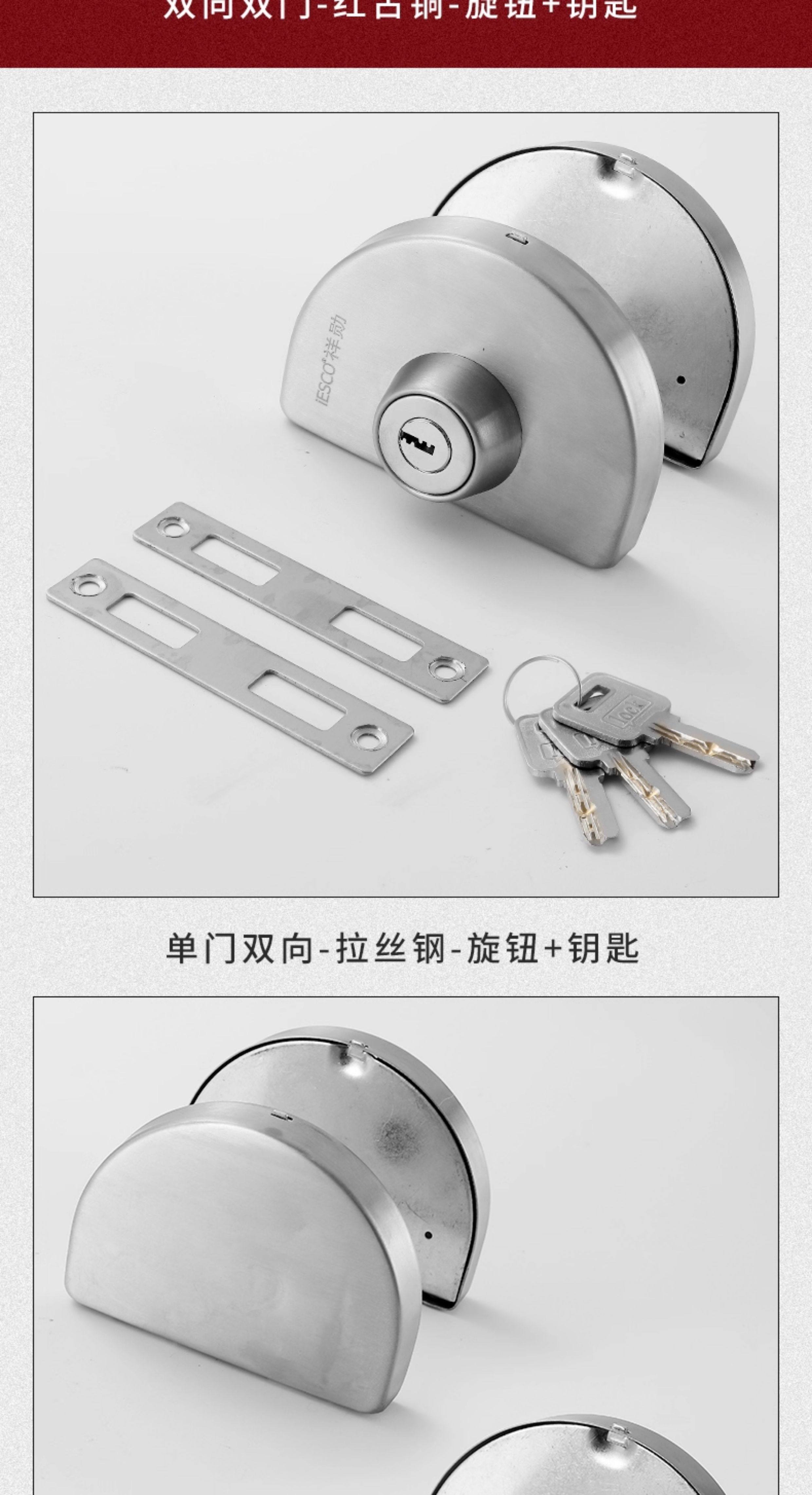Iesco Stainless Steel Framed Door Lock Glass Single and Double Door Lock Double Door Lock Sliding Door Lock Double-Sided Glass Lock