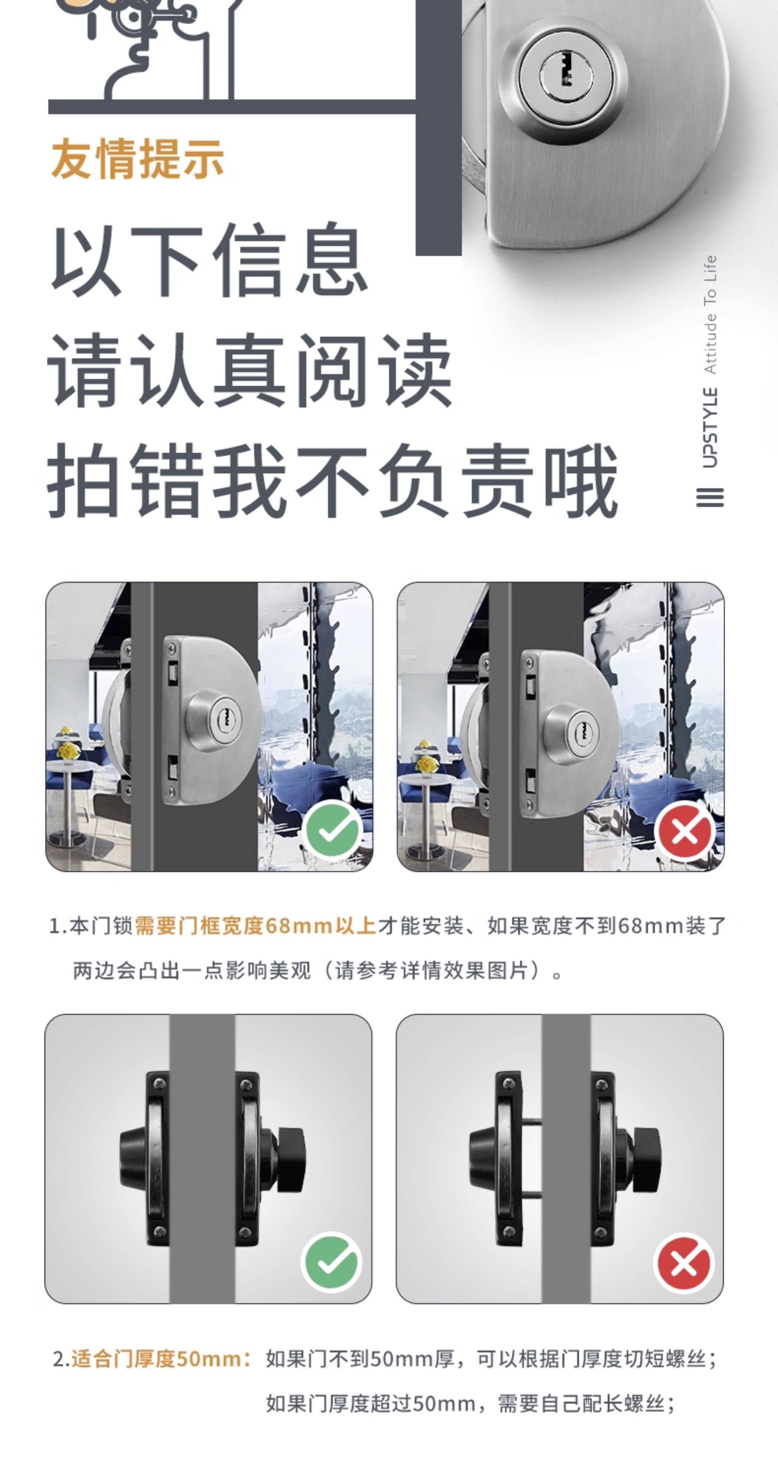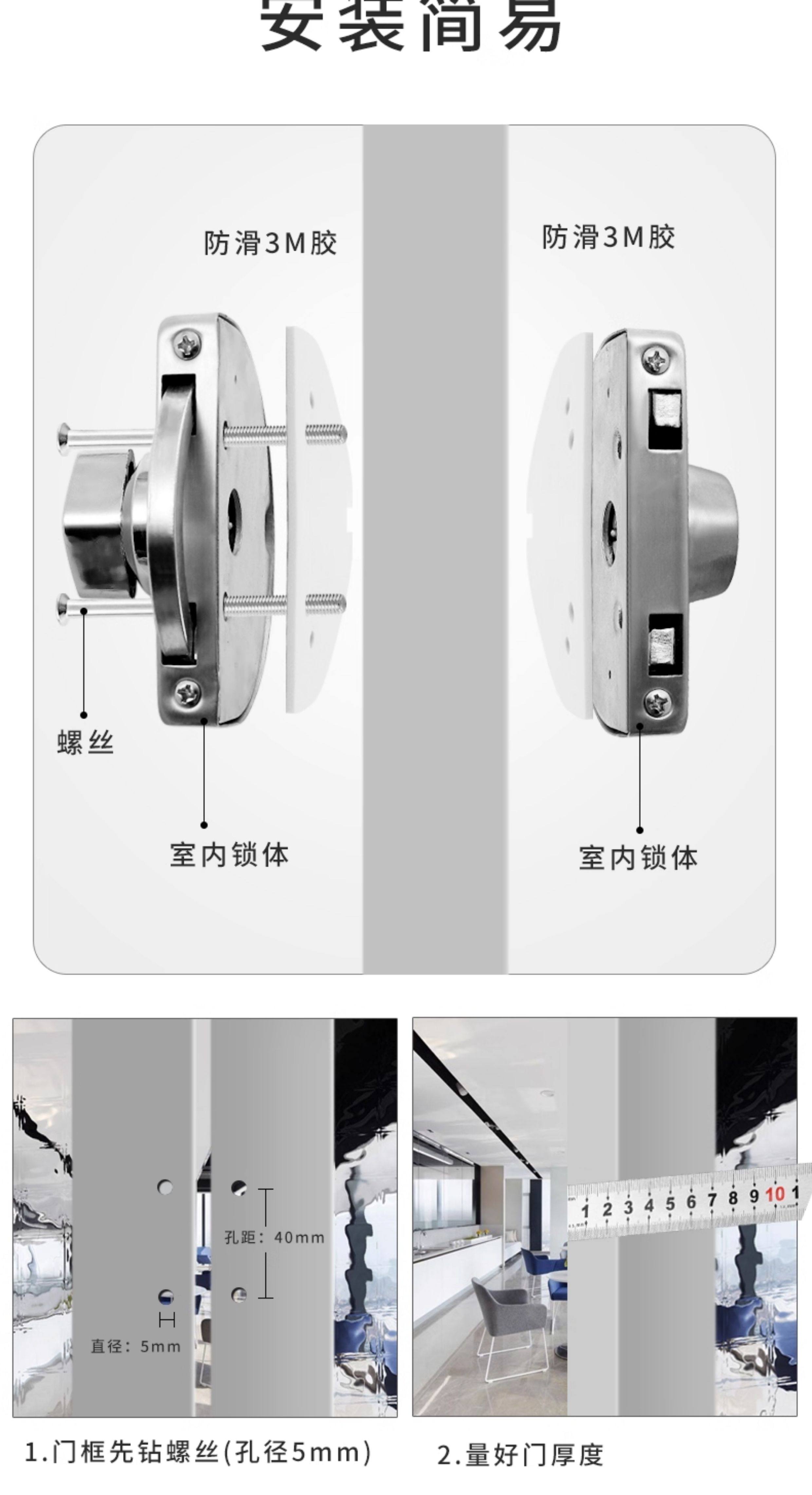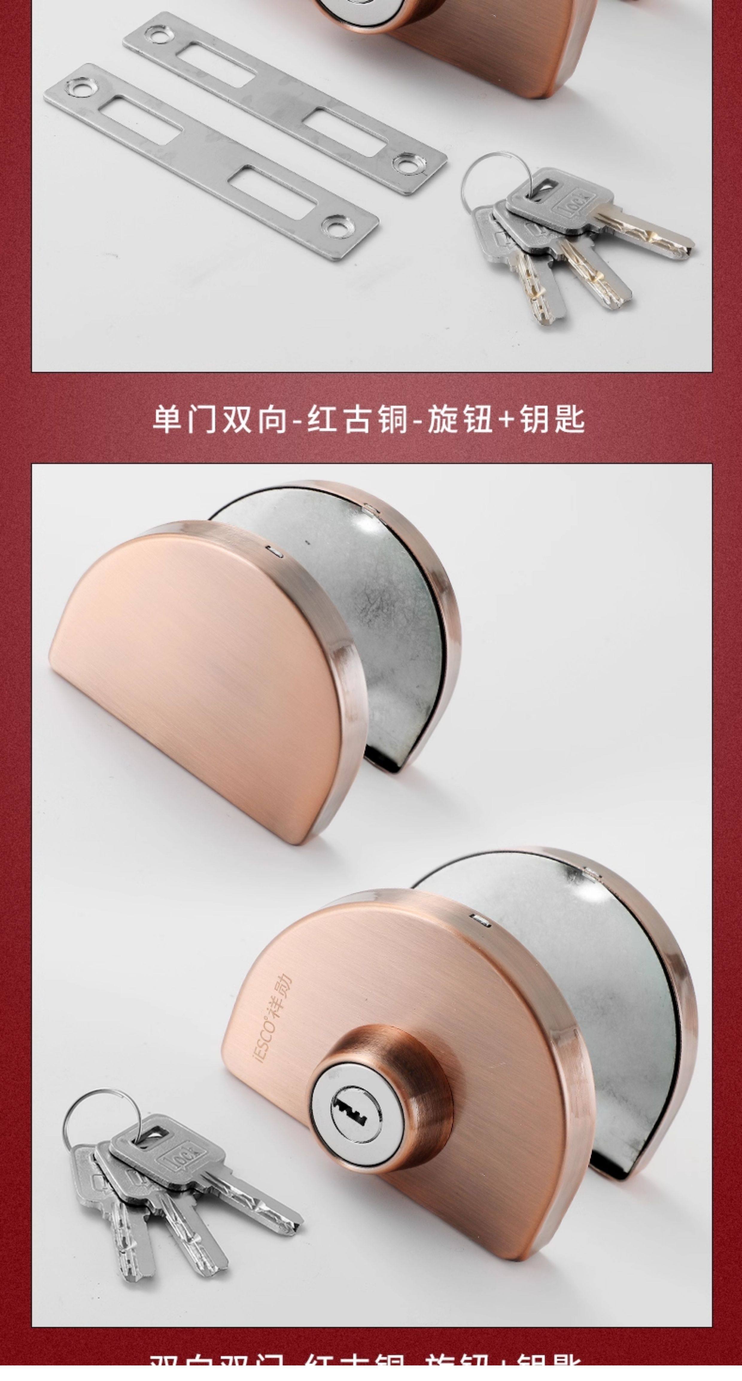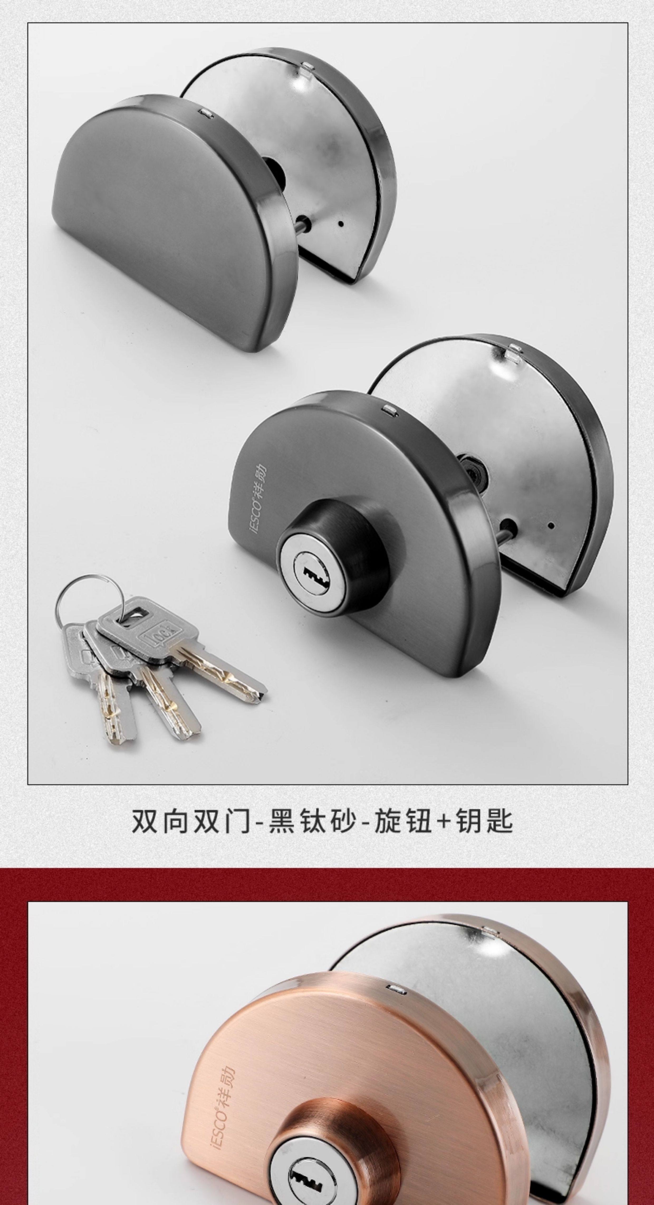 Iesco Stainless Steel Framed Door Lock Glass Single and Double Door Lock Double Door Lock Sliding Door Lock Double-Sided Glass Lock