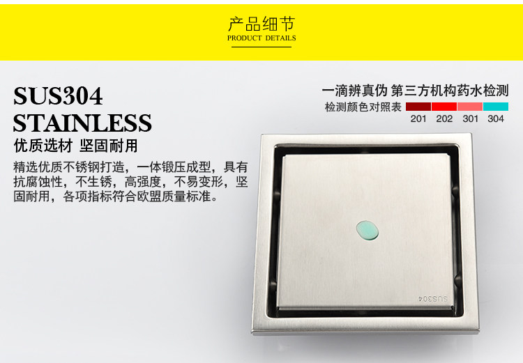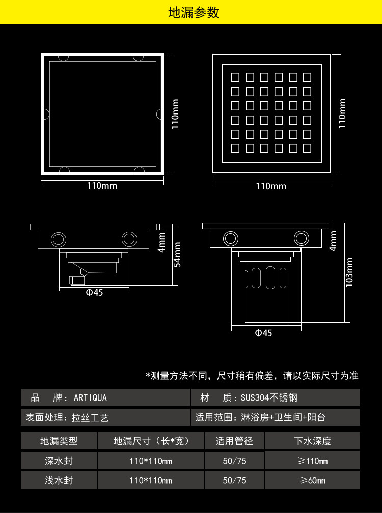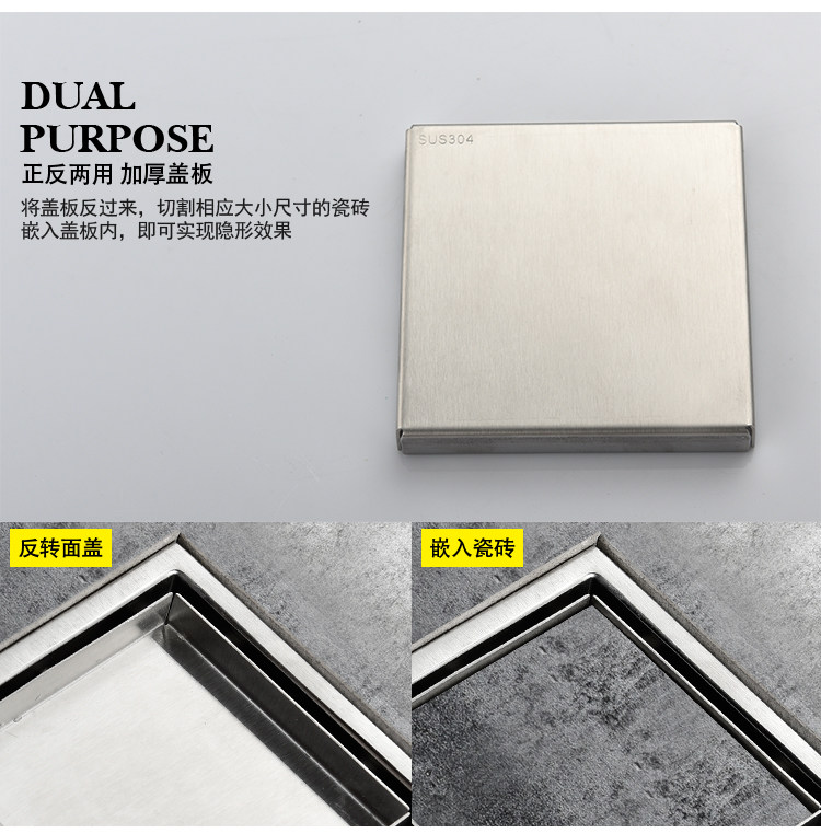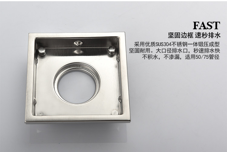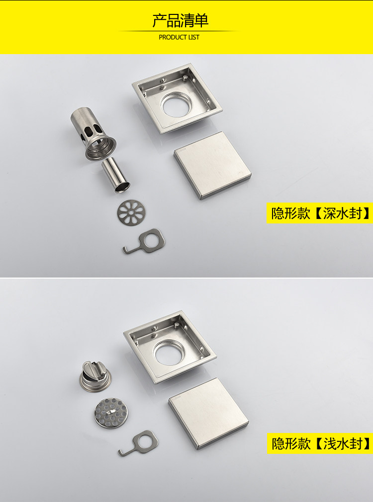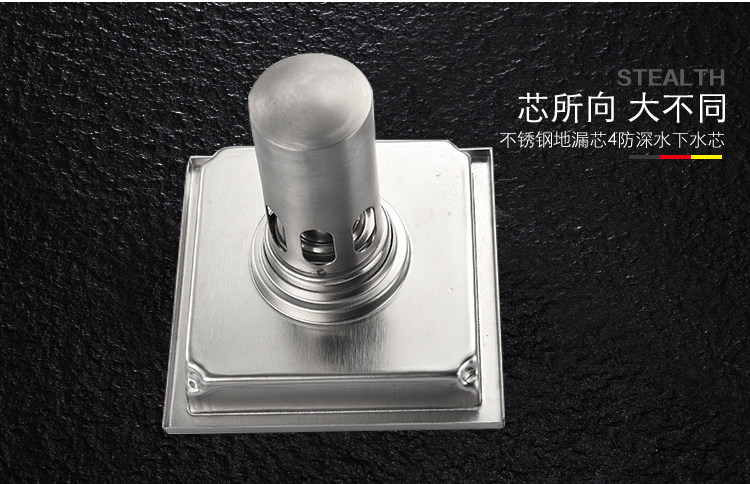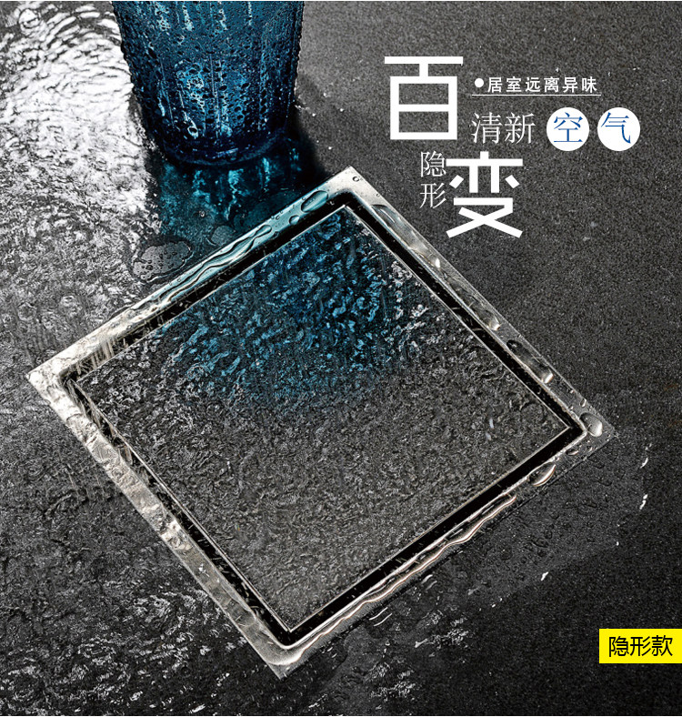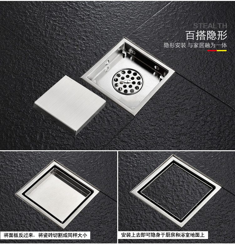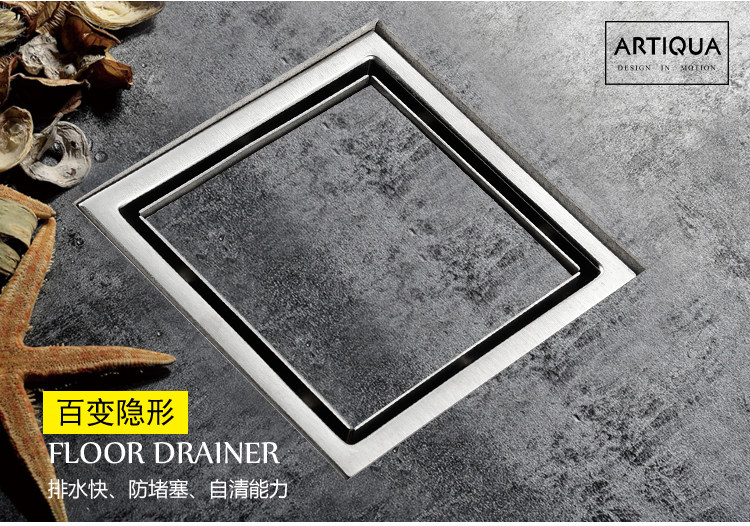 Artiqua Bathroom Shower Room Bathroom Thickeneded 304 Stainless Steel Deodorant Floor Drain Square Invisible Floor Drain