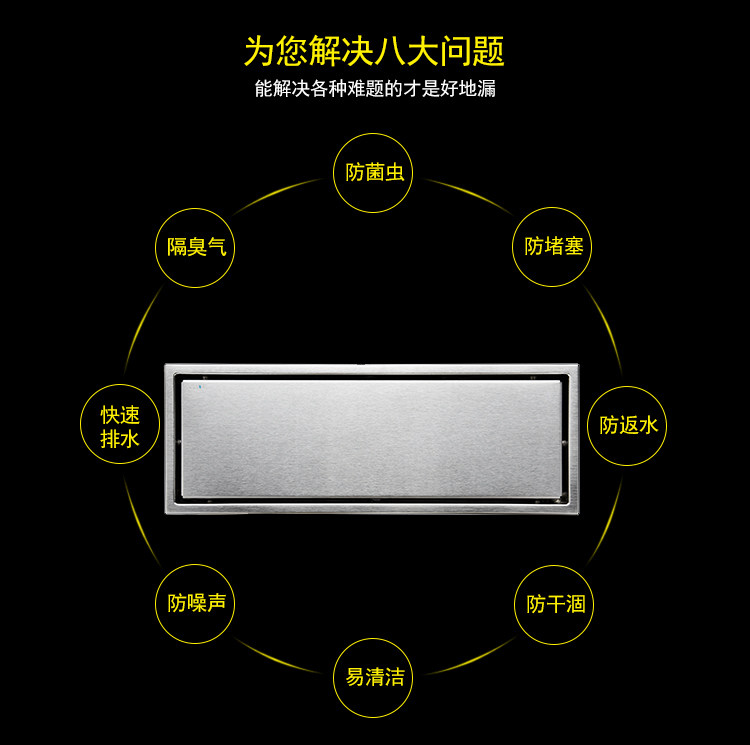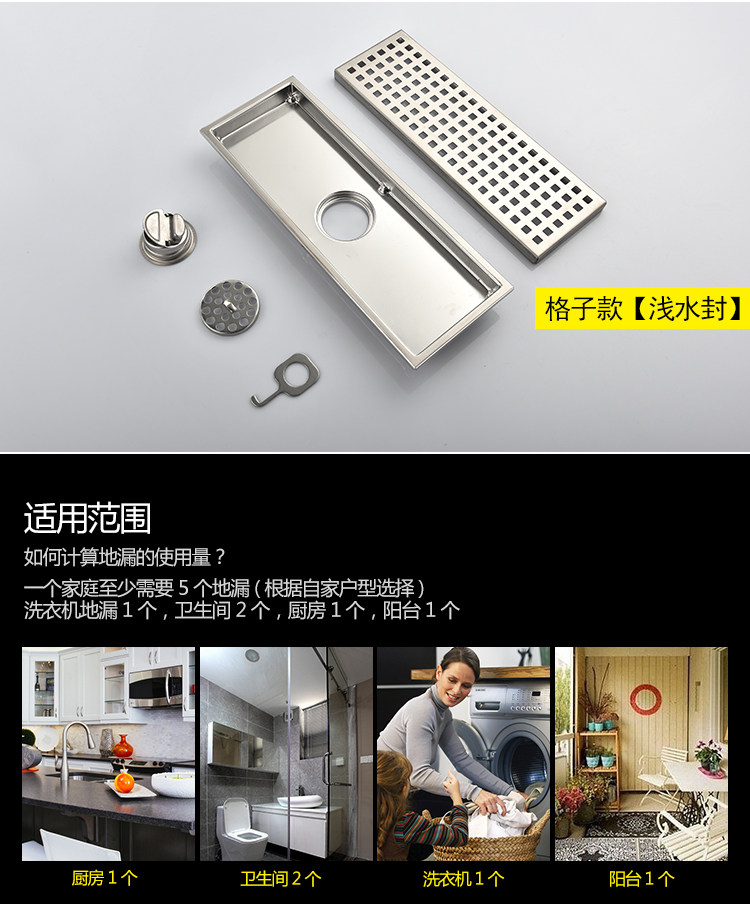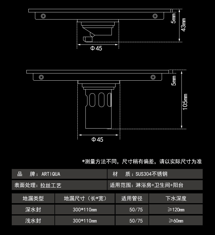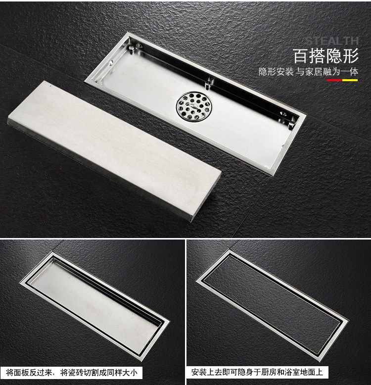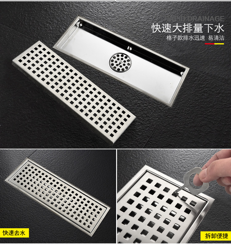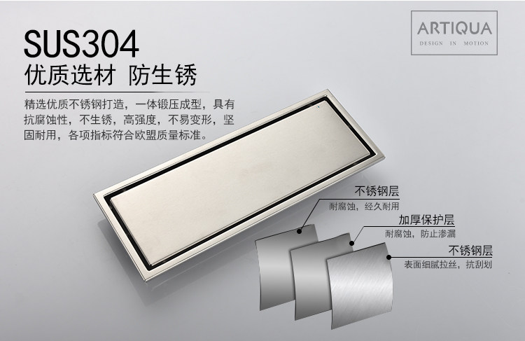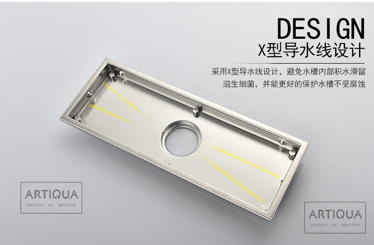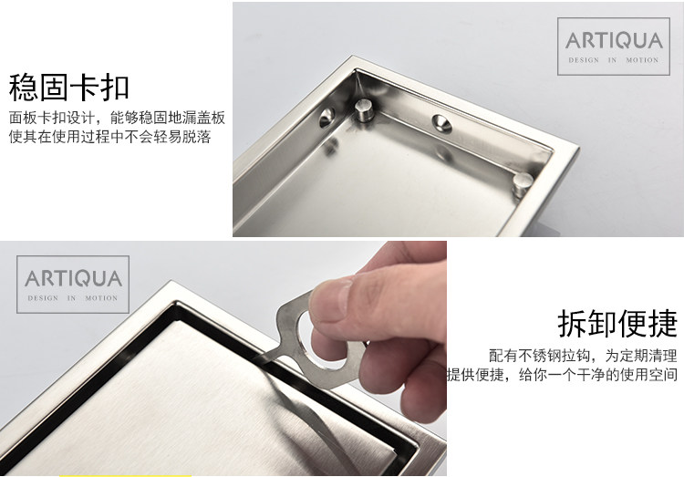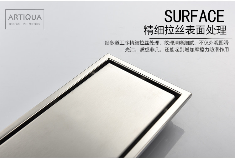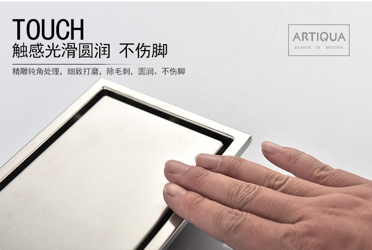 Artiqua Bathroom Shower Room Rectangular 304 Stainless Steel Large Flow Anti-Clogging Anti-Odor Floor Drain