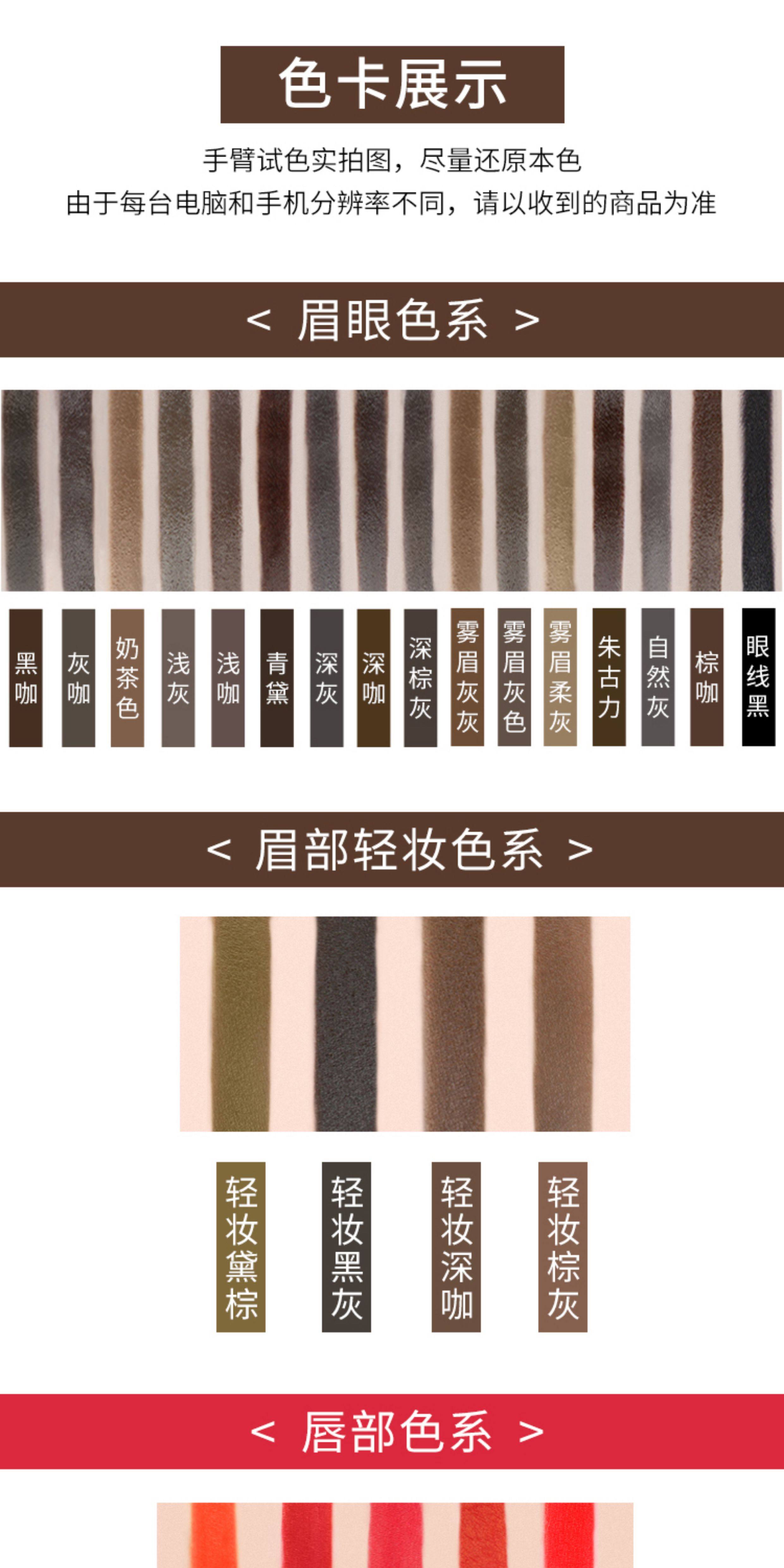 Color Classification Eyebrows - Dark Coffee,Eyebrows - Light Coffee,Eyebrows-Brown Coffee,Eyebrows - Gray Coffee,Eyebrows-Black Coffee,Eyebrows-Chocolate,Eyebrows - Dark Brown Gray,Eyeliner - Imperial Black,Eyebrows - Natural Gray,Eyebrows-Milk Tea,Eyebrows - Indigo,Eyebrows - Light Gray,Eyebrows - Dark Gray,Foggy Eyebrows Gray,Mist Eyebrow Gray,Mist Eyebrow Soft Gray,Soft Skin Tone - Cover,Change Blue Eyebrow-Orange Coffee,Change to Green Eyebrow - Green Coffee,Pink-Universal Powder Liquid,White White - Shade Variation,Red Lips - Deep Red,Lips - Pink,Lips-Orange Red,Lips - Bright Red,Lips - True Red,Solid Color - Earthy Yellow