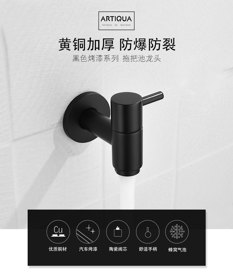 Artiqua All-Copper Washing Machine Faucet Balcony Extended Mop Sink Faucet Quick-Open 1/2 Inch 3/4 Inch Spout