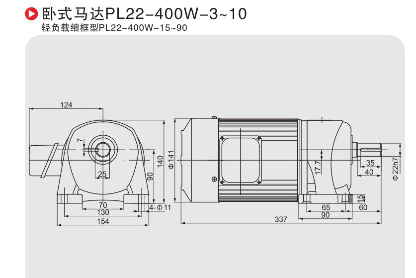 Dongli Motor 400W horizontal vertical three-phase frequency conversion YSJ400W-4P motor reduction motor PL22-400W