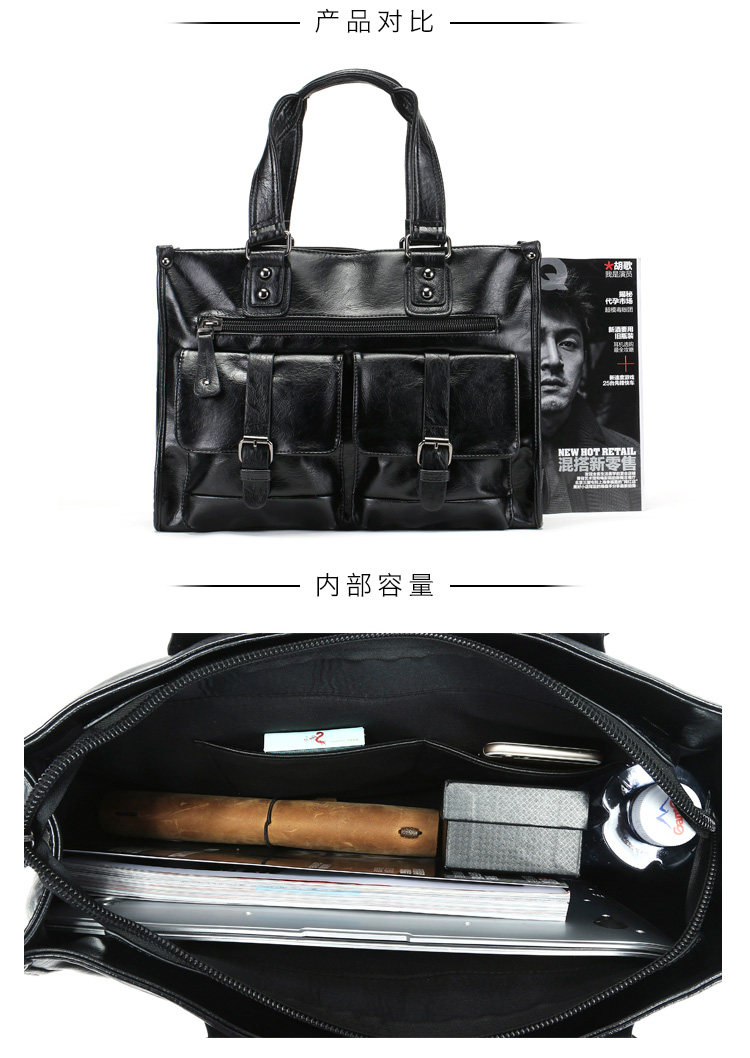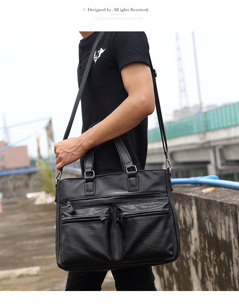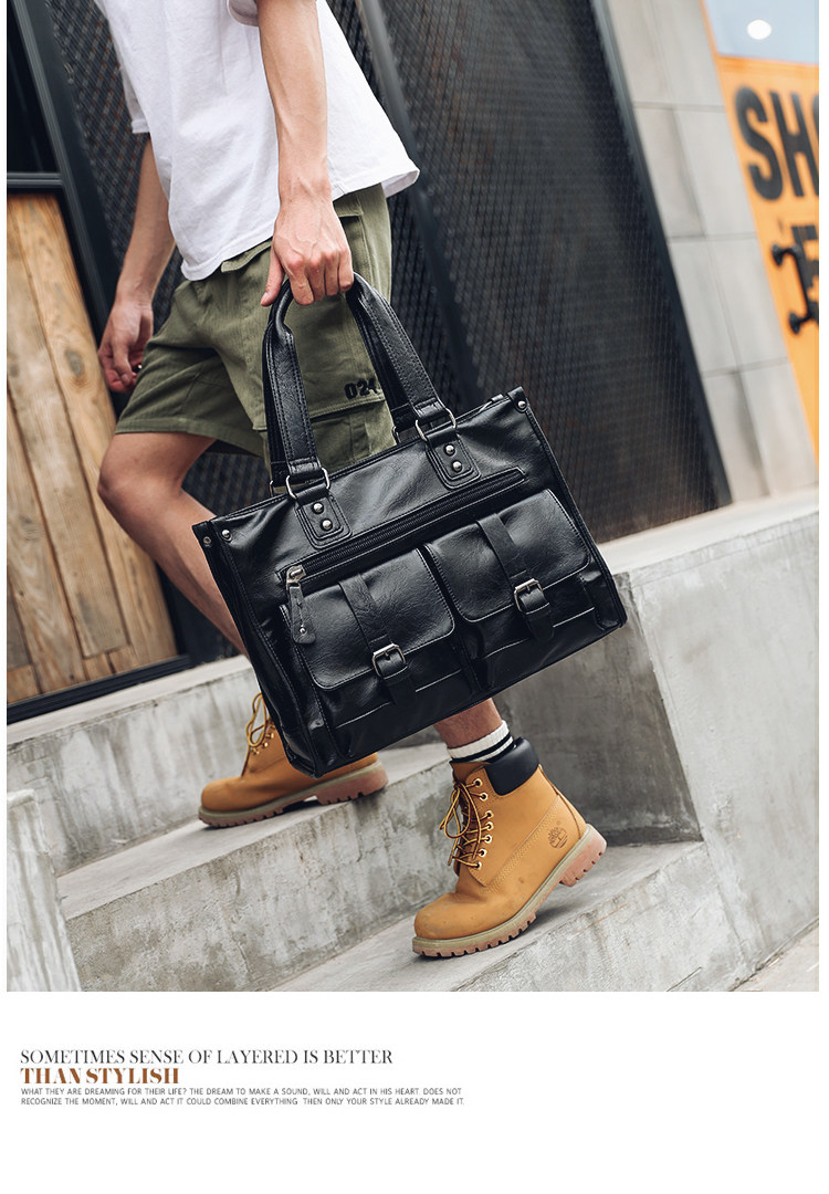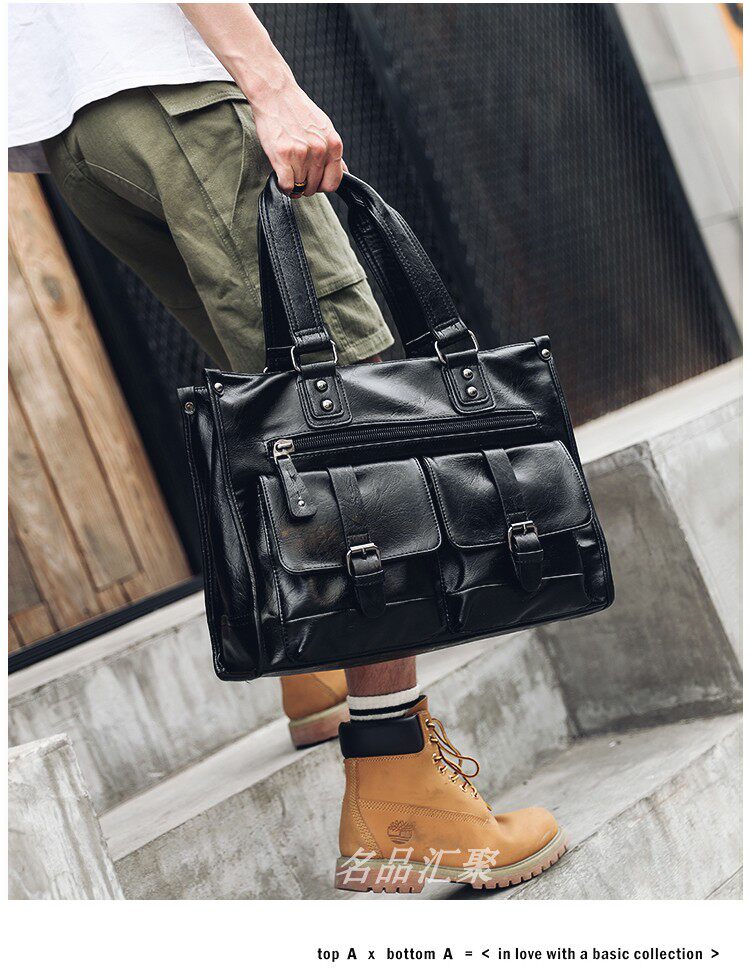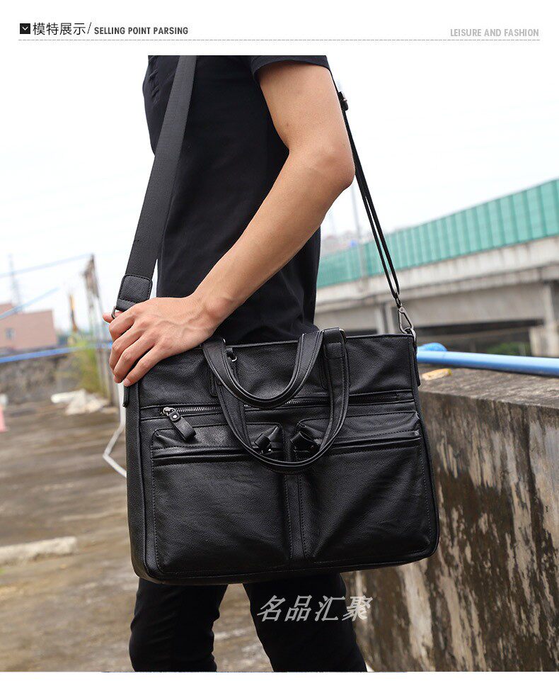 European and American New Style Genuine Leather Men's Handbag, Horizontal Casual Business Briefcase, British Style Youth Shoulder Bag, Crossbody Bag