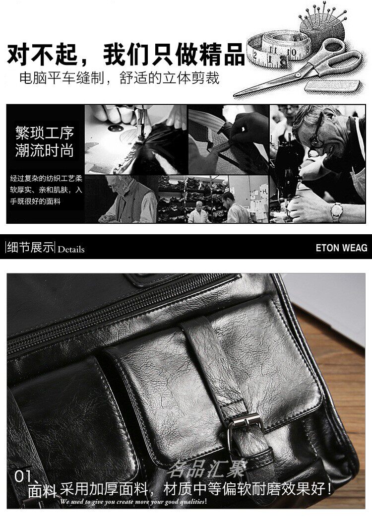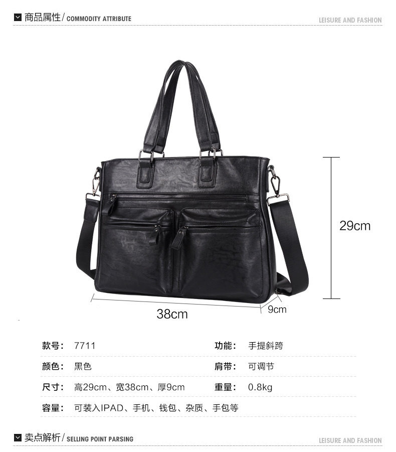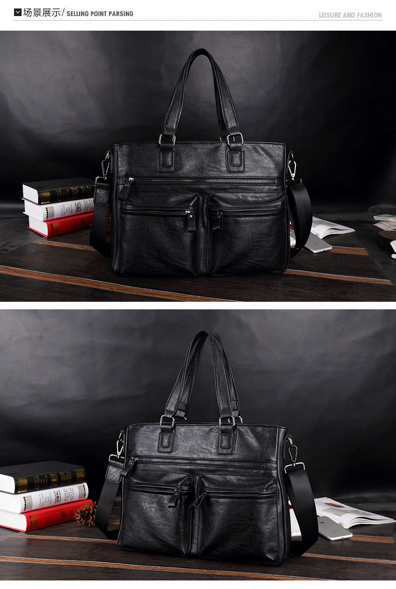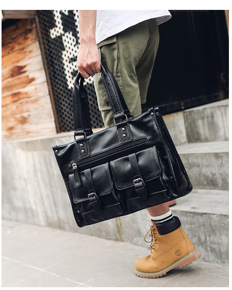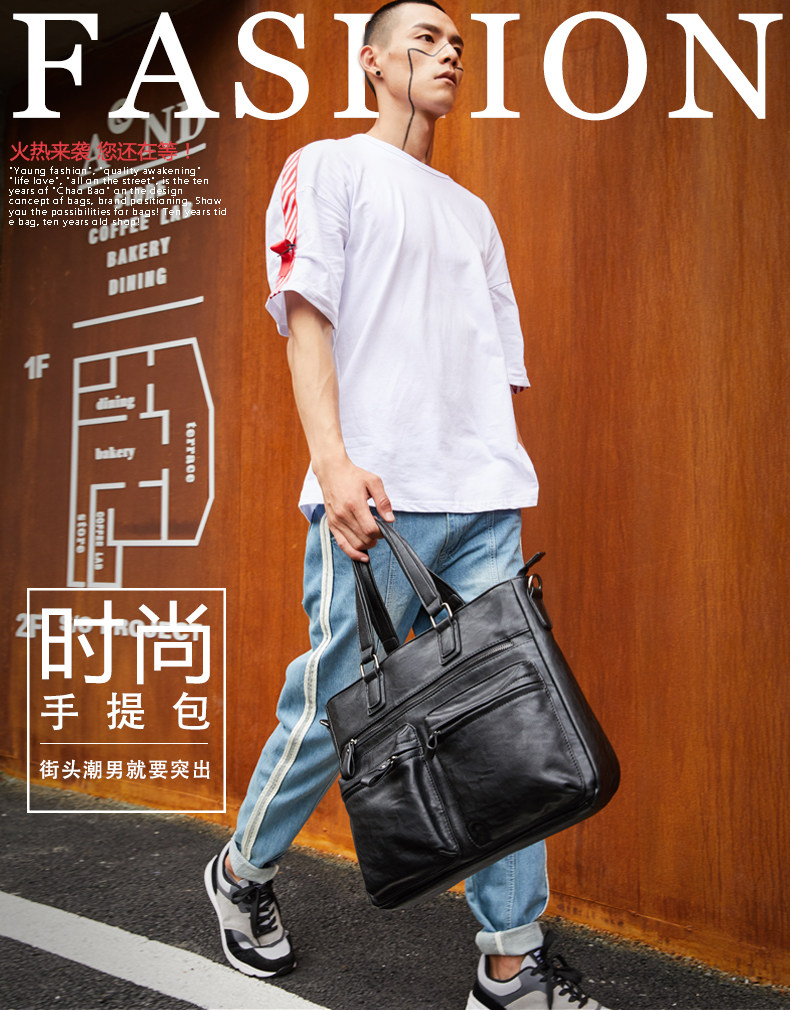 European and American New Style Genuine Leather Men's Handbag, Horizontal Casual Business Briefcase, British Style Youth Shoulder Bag, Crossbody Bag