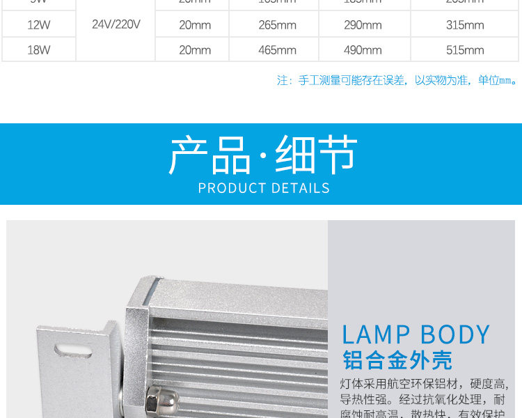 Sort by color 24V9W 200mm long,110V-220V9W 200mm long,24V12W 300mm long,110V-220V12W 300mm long,24V18W 500mm long,110V-220V18W 500mm long