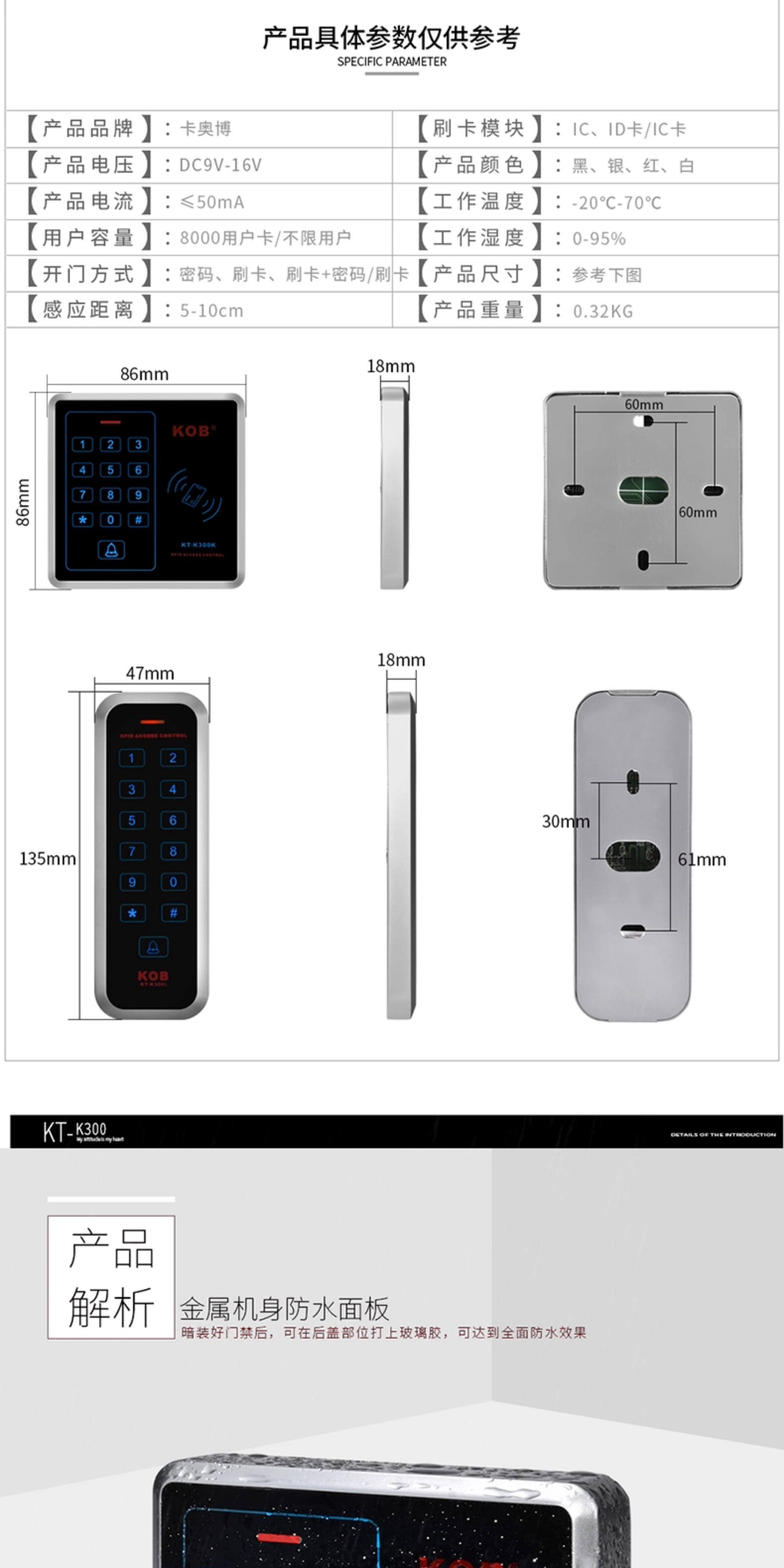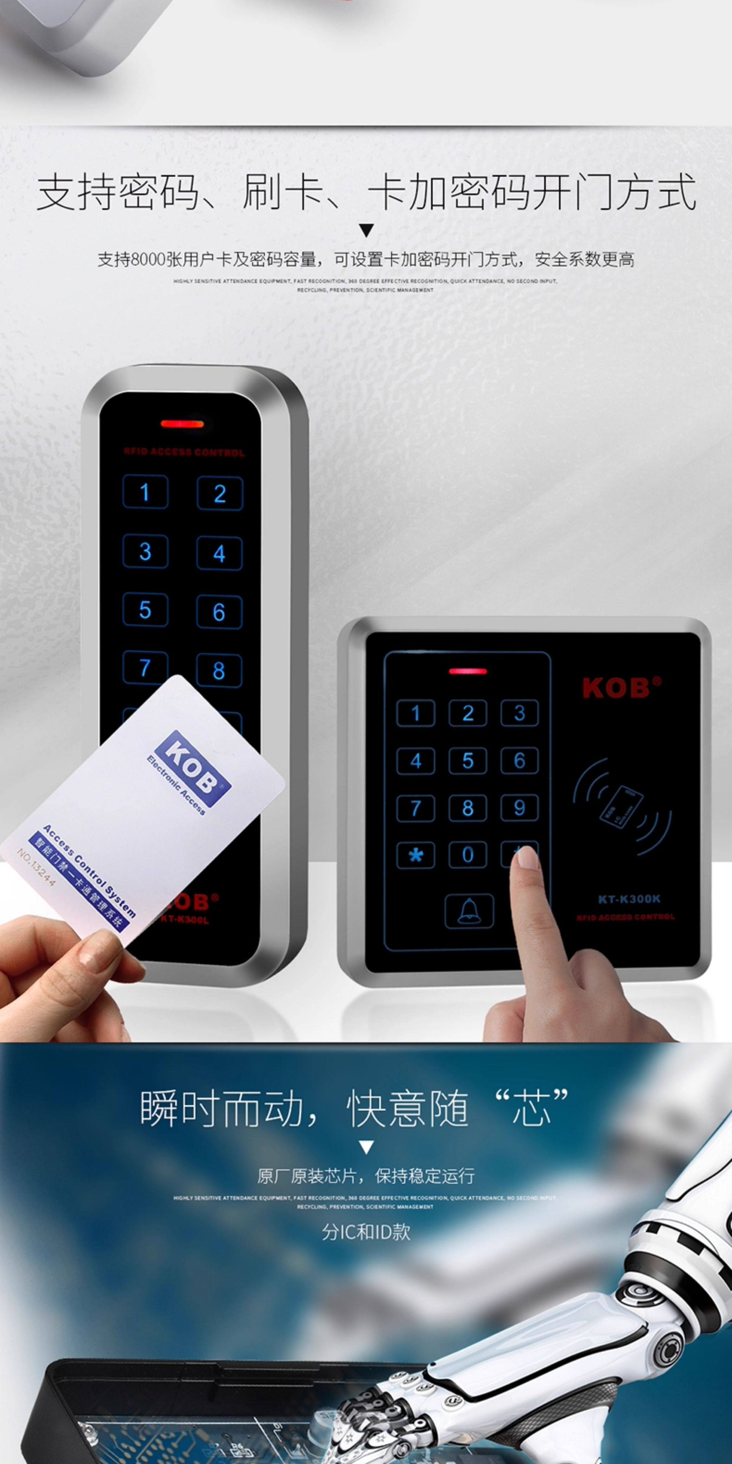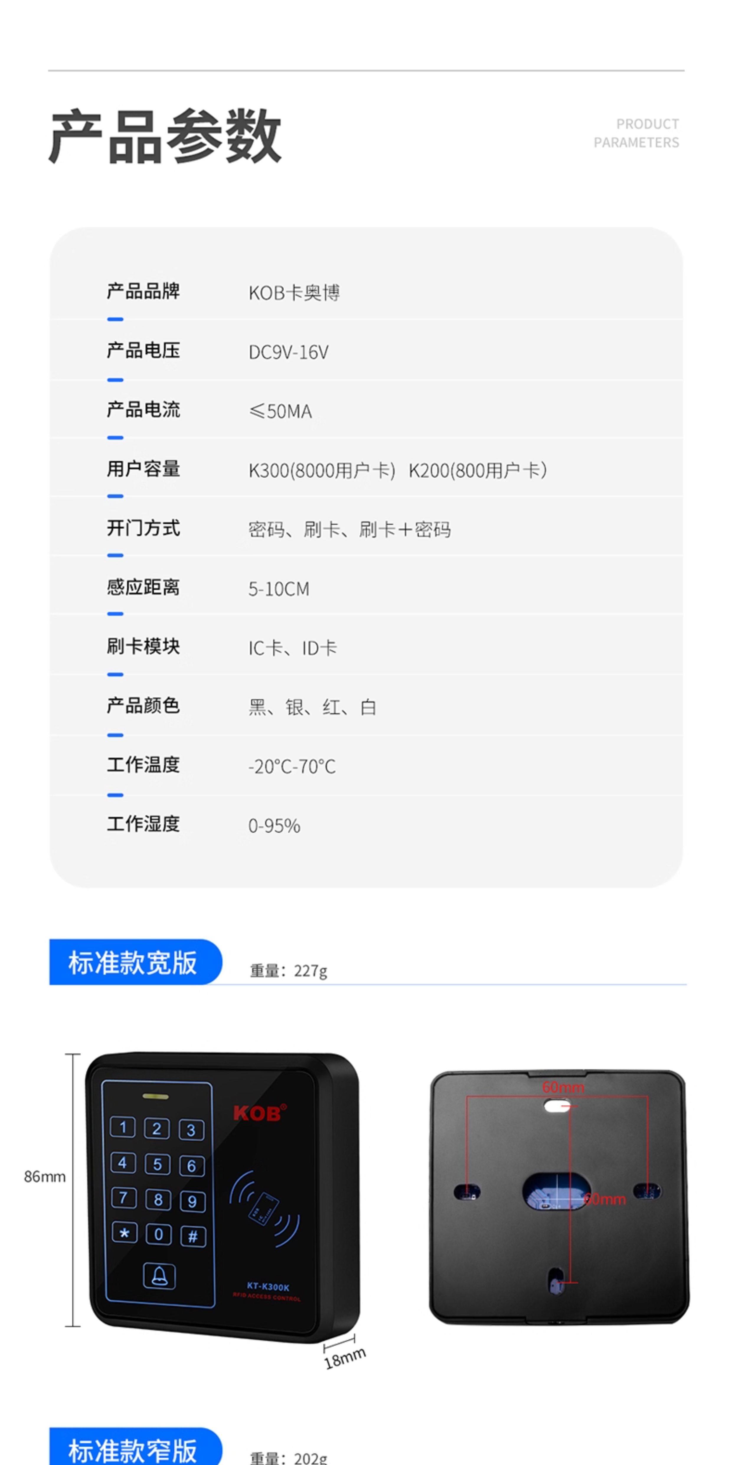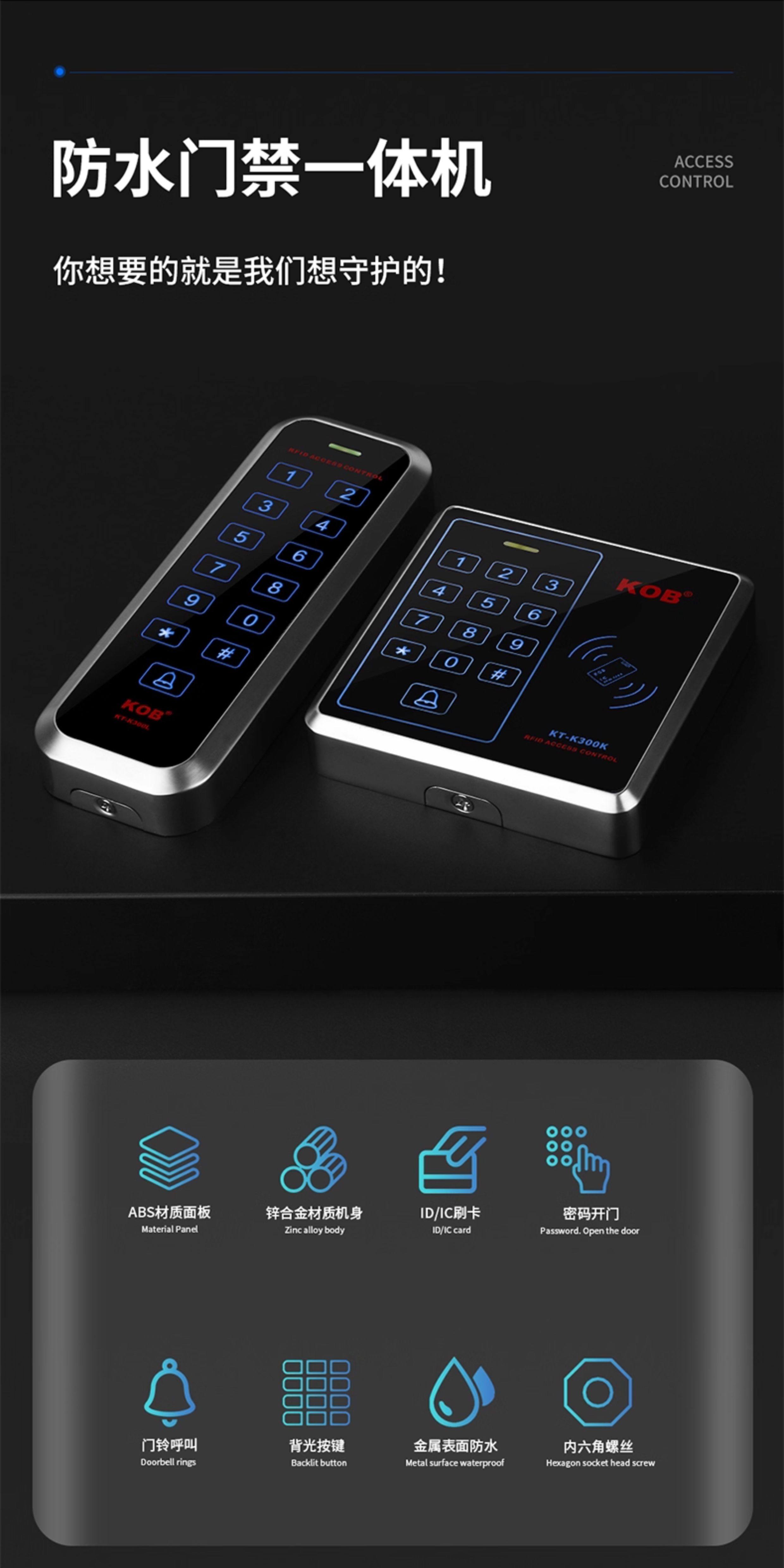 Kob Metal Waterproof Access Control System All-In-One Machine for Office Wooden Doors, Smart Electronic Password Swipe Card Access Lock