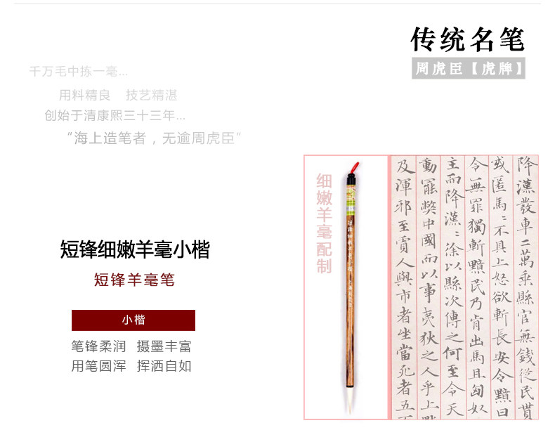 Authentic Zhou Huchen Calligraphy Brush, Short and Long Bristle, Goat Hair, for Cursive Script, Seal Script, Calligraphy, Slim Gold Script, Medium and Small Script, Scripture Copying Brush