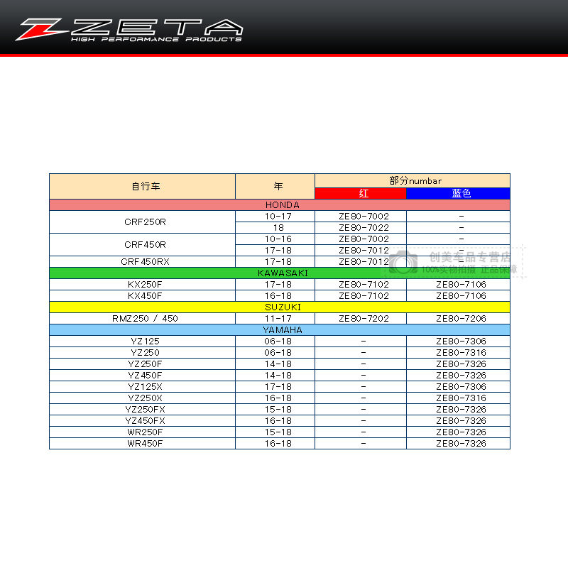 Color Classification Honda Crf250R(10-17)450R(10-16),Yamaha,Kawasaki Kx250F (17-20),Suzuki,For Honda Crf250R (18-19)