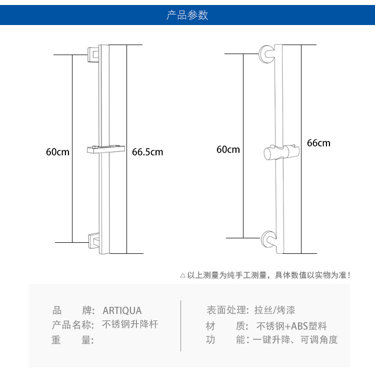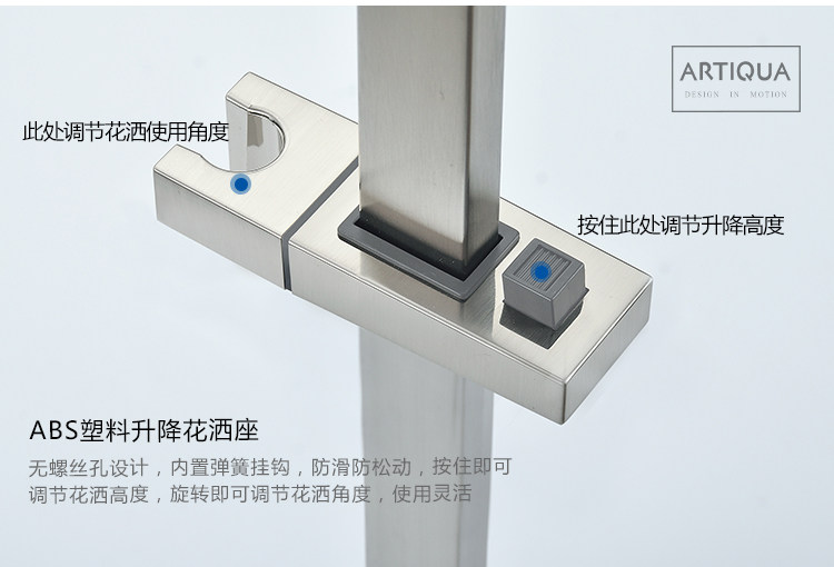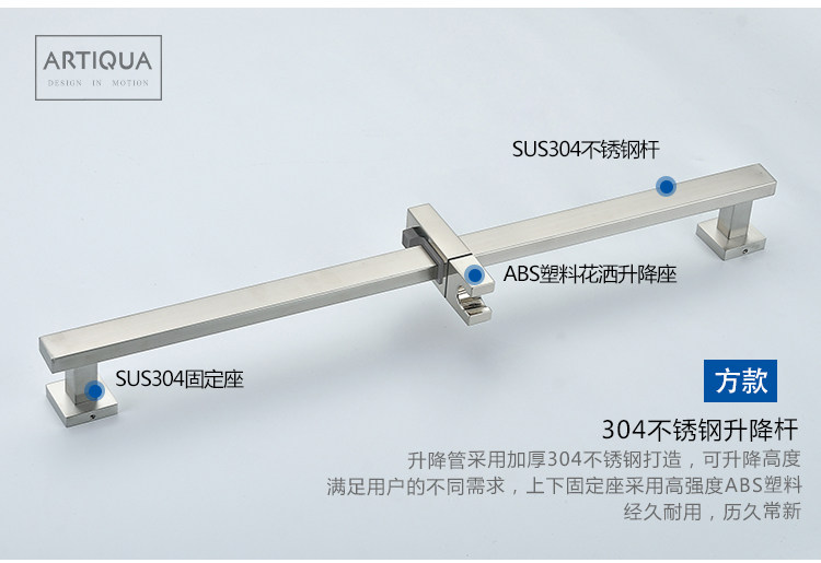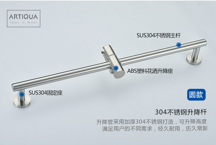 Artiqua Shower Lift Rod 304 Stainless Steel Adjustable Shower Head Bracket Brushed Finish
