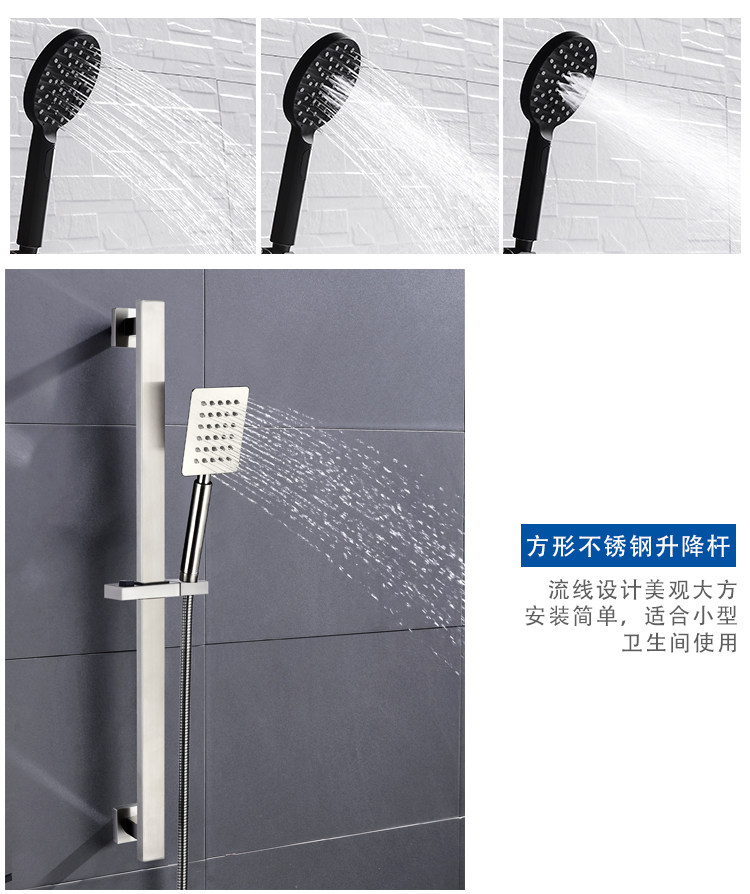 Color Classification Square Stainless Steel Lifting Rod[Single Pole with Socket],Round Stainless Steel Lifting Rod[Single Pole with Socket],Square Lifting Rod + Abs Shower + Shower Pipe,Square Lifting Rod + Stainless Steel Shower + Shower Pipe,Round Lifting Pole + Five-Function Shower + Shower Pipe,Round Lifting Rod + Stainless Steel Shower + Shower Pipe,Black Stainless Steel Lifting Rod[Single Pole with Socket],Black Adjustable Shower Arm + 3-Function Shower Head + Shower Hose