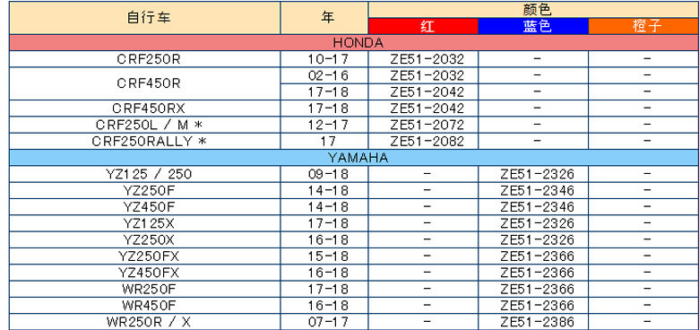 Color Classification Honda Crf250R,Yamaha,Suzuki,Kawasaki,KTM,HUSQVARNA