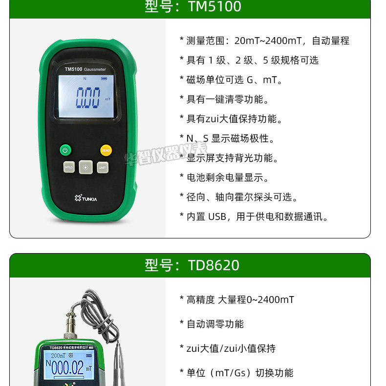 Color Classification Td8620 (Accuracy Level 5 + Free Charging Set,Td8620 (Accuracy Level 2) + Free Charging Set,Td8620 (Accuracy Level 1) + Free Charging Set,Tm5100 (Accuracy Level 1),Tm5100 (Accuracy Level 2),Tm5100 (Accuracy Level 5),Desktop Td8650 (Single Dc) with Communication Function,Desktop Td8650 (Ac and Dc) with Communication Function,Tm5100A-1 Ac (Accuracy ±1%),Tm5100A-2 Ac (Accuracy ±2%),Tm5120B-1 Ac and Dc Magnetic Field (Accuracy ±1%),Tm5120B-2 Ac and Dc Magnetic Field (Accuracy ±2%),Tm5340B Ac and Dc (Three-Axis Magnetic Field Measurement),Td8620 Probe