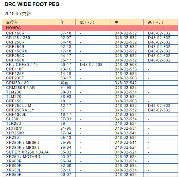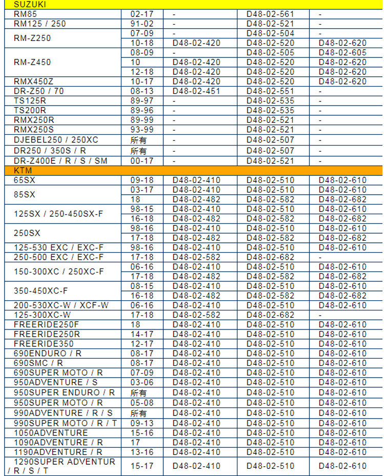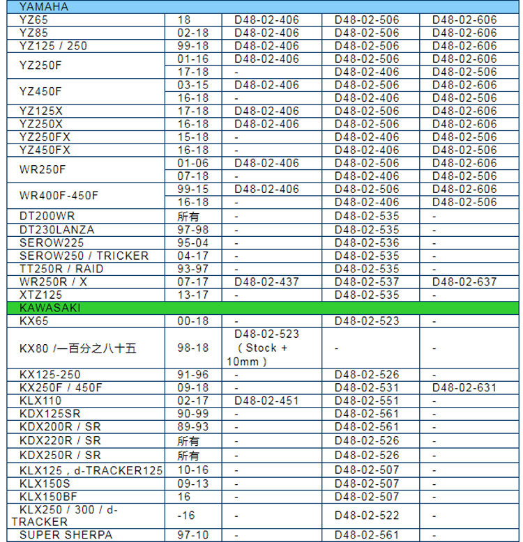 Color Classification HONDA,YAMAHA,KAWASAKI,SUZUKI,KTM,HUSQVARNA,BETA,Height 5mm,Low 5mm,Standard,Kawasaki Kx-Item No.: D43-02-531,DRZ400-D48-02-521,CUB110 D48-02-543,D48-02-503,D48-02-482