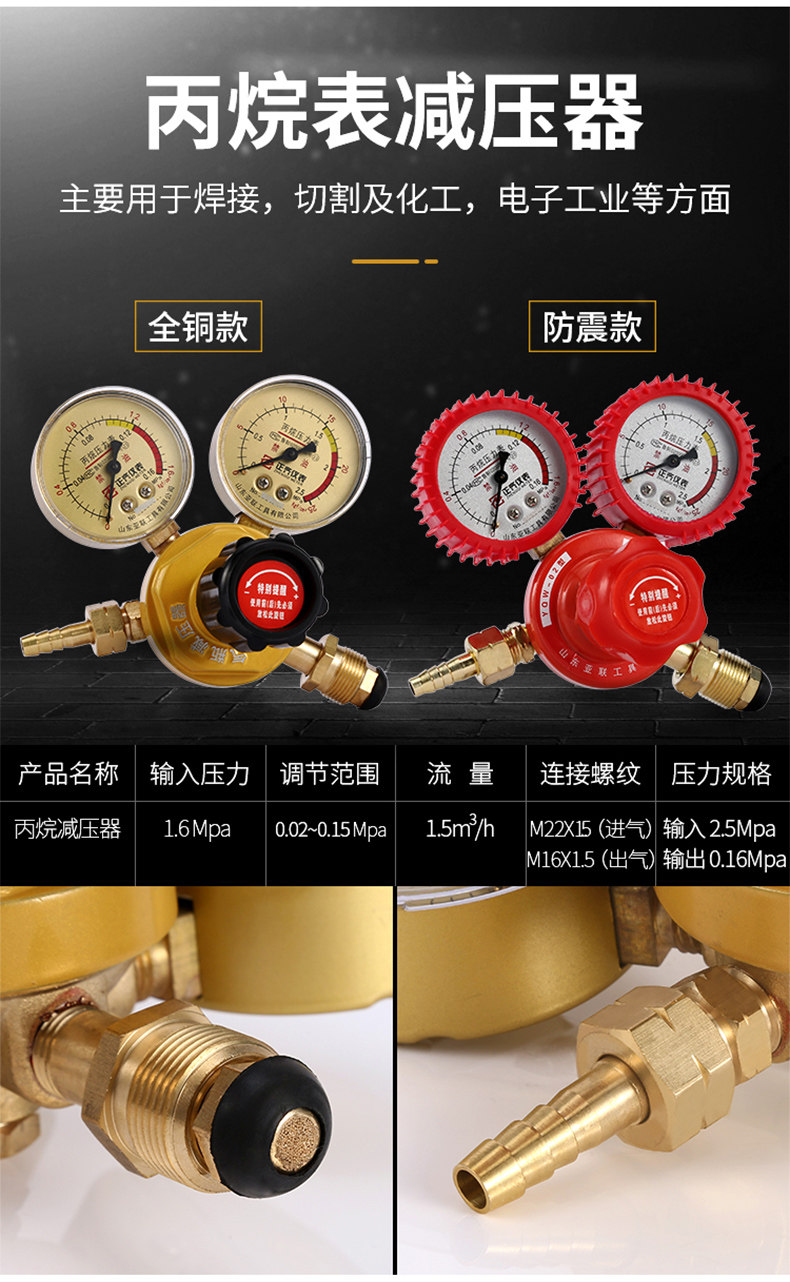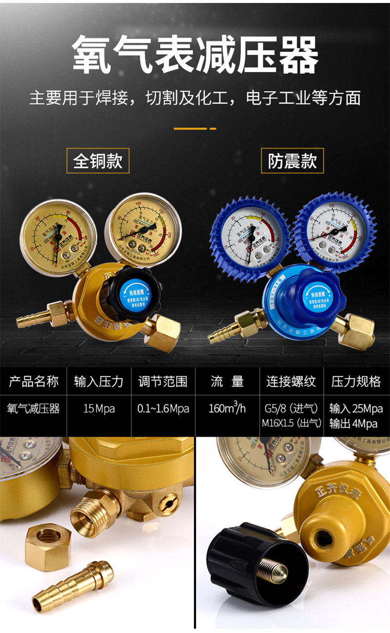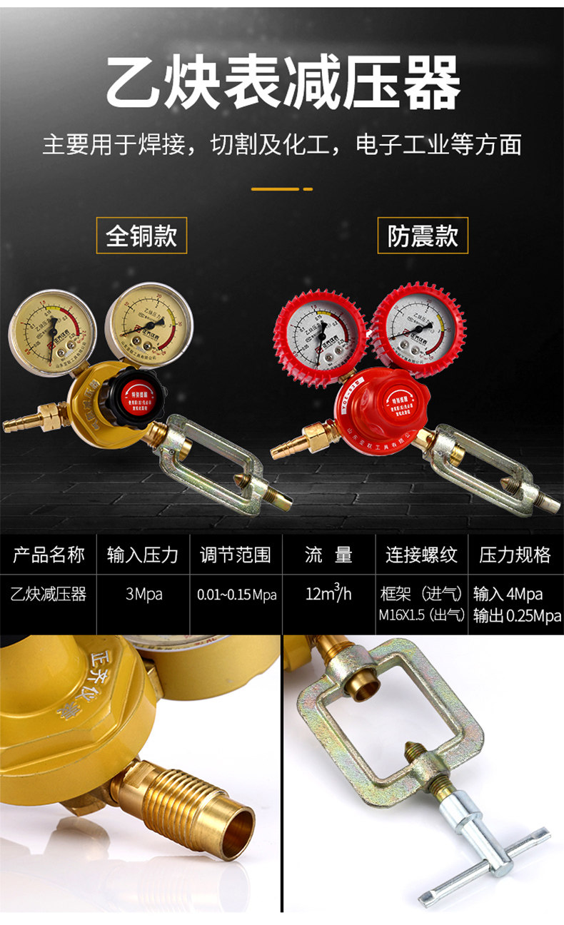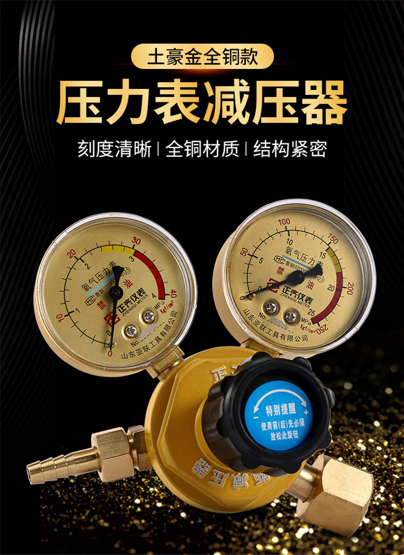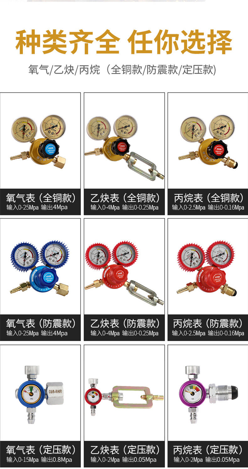Oxygen meter, acetylene meter, propane meter, argon meter, pressure reducer, pressure reducing valve, pressure gauge, oxygen all-copper shock-proof connection valve