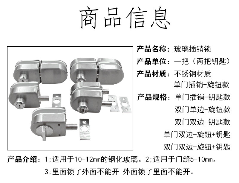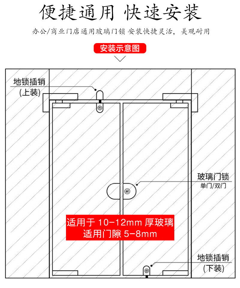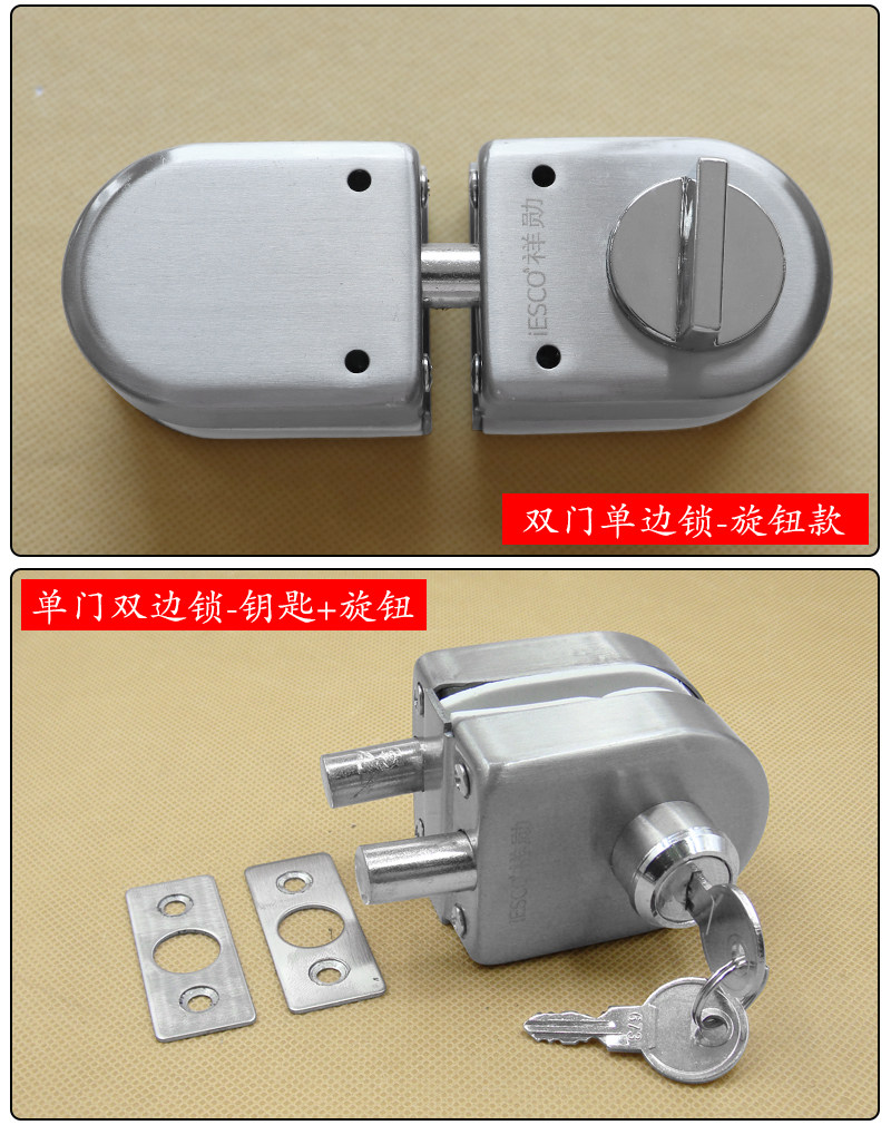 Iesco Hole-Free Glass Door Lock Single Door Double Door Glass Door Lock Latch Lock Central Door Lock Ground Latch Door Lock