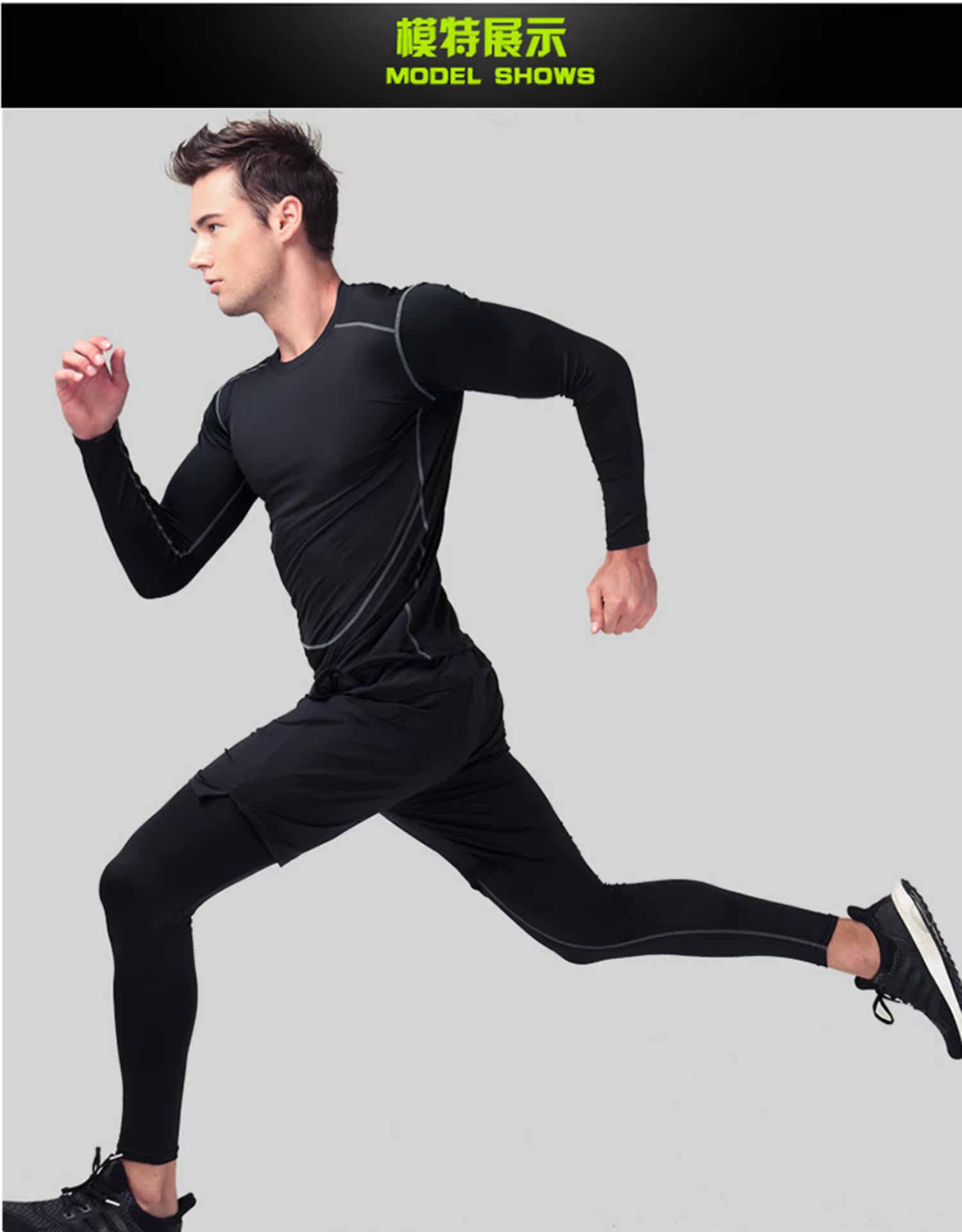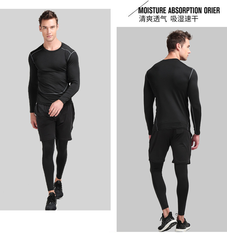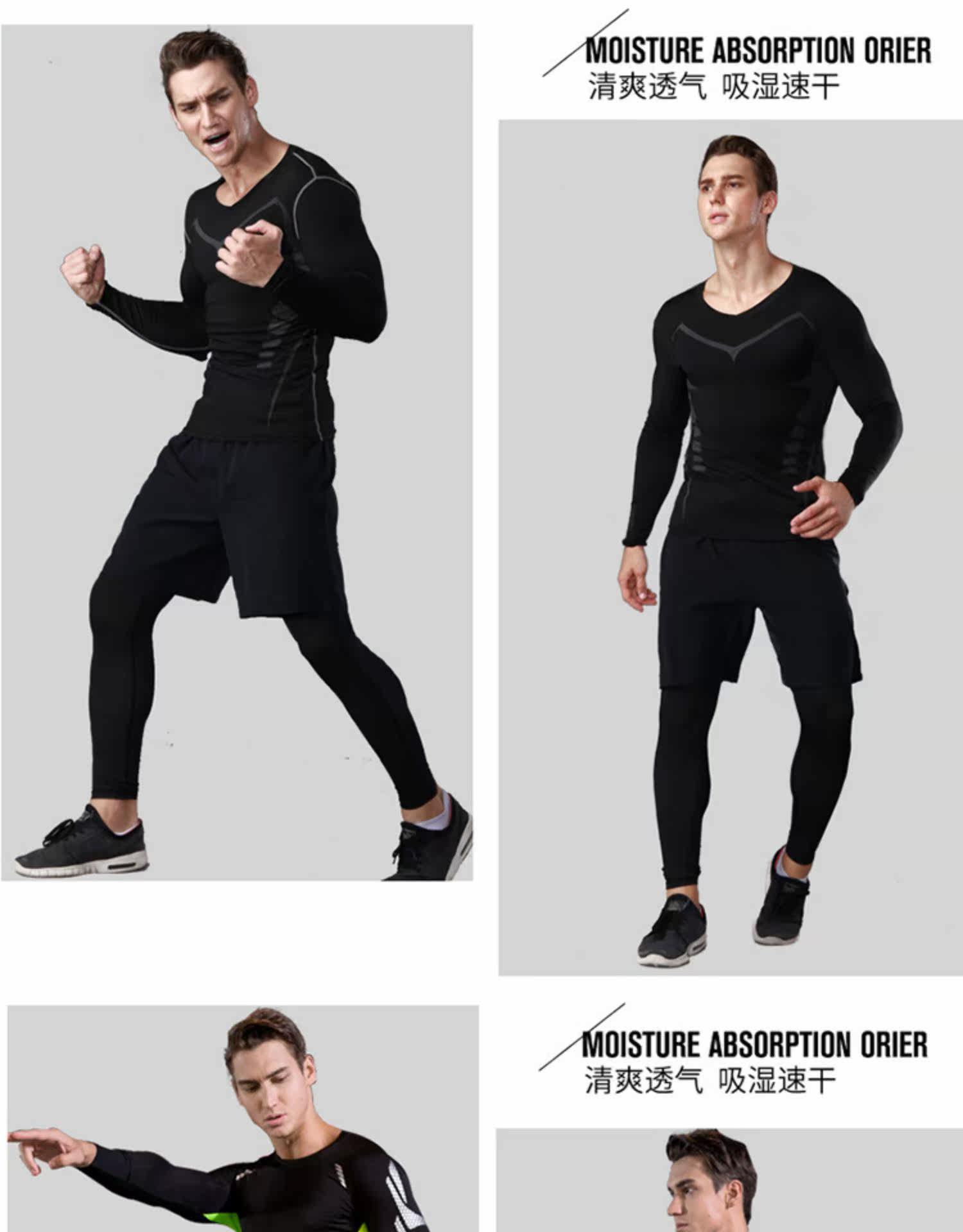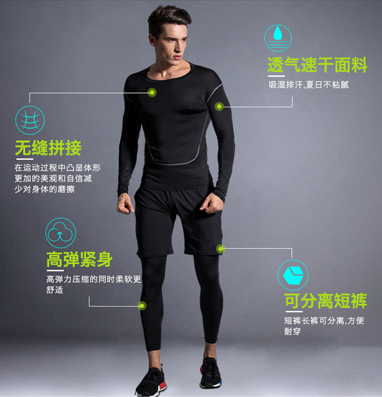 Yinghu Quick-Drying Sports Fitness Clothing Set for Men, Summer and Autumn Training Long-Sleeved Tights, Quick-Drying Clothing, Casual Wear, Thin