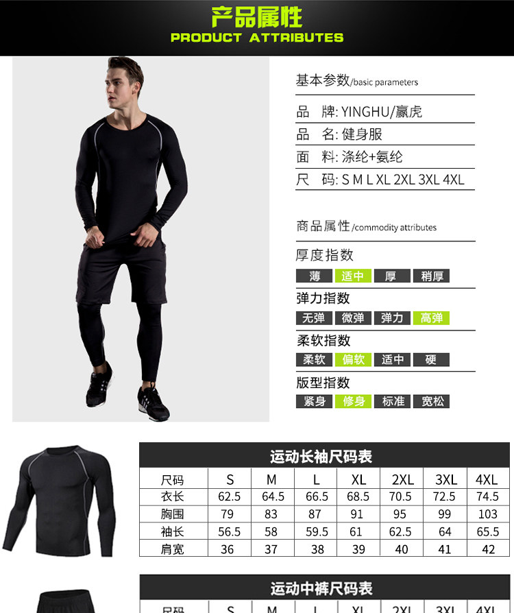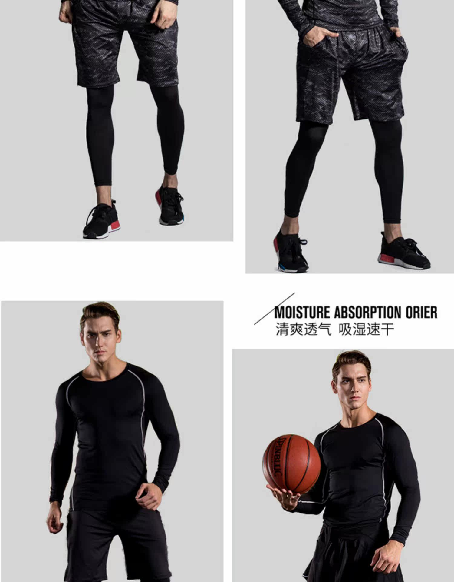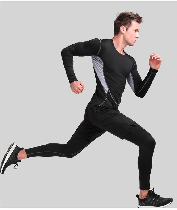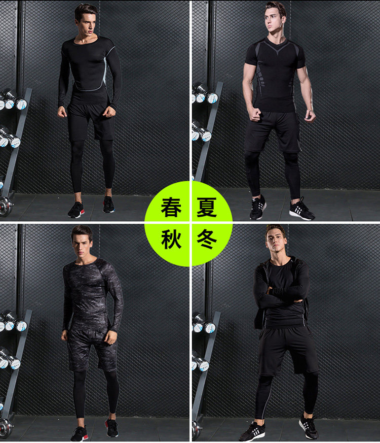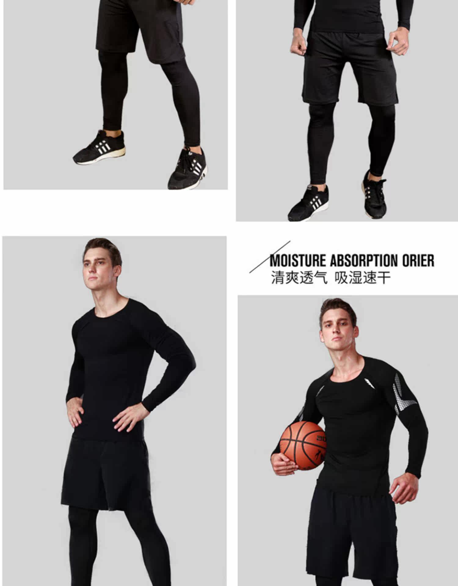 Yinghu Quick-Drying Sports Fitness Clothing Set for Men, Summer and Autumn Training Long-Sleeved Tights, Quick-Drying Clothing, Casual Wear, Thin