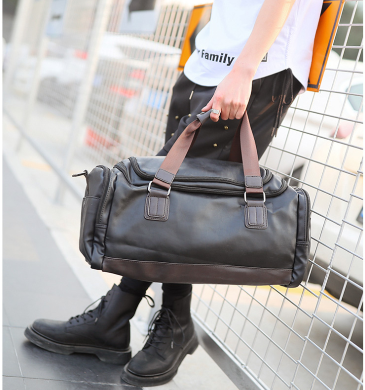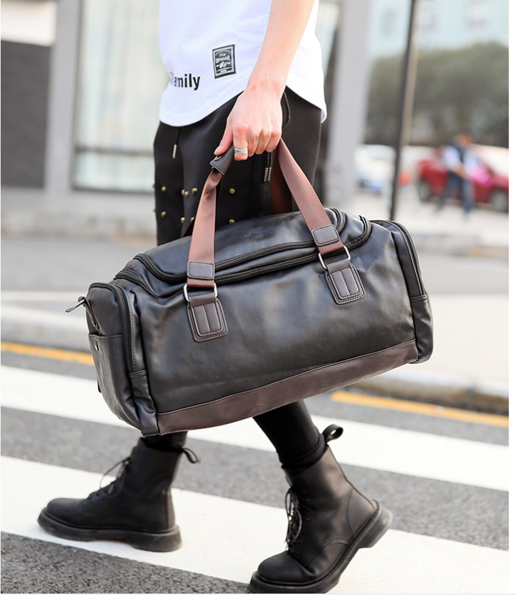 New Genuine Leather Extra-Large Capacity Men's Business Travel Bag, Hand-Held Travel Bag, Cowhide Boarding Bag, Short-Distance Luggage Bag