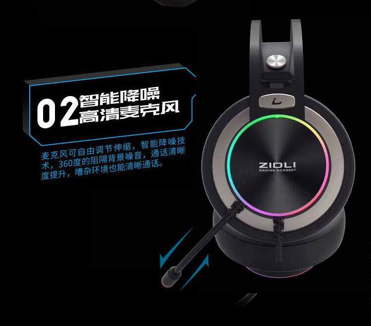ZIDLI's new magnetic power ZH20 game chicken LOL alliance headset USB light-emitting 7.1 channel headset