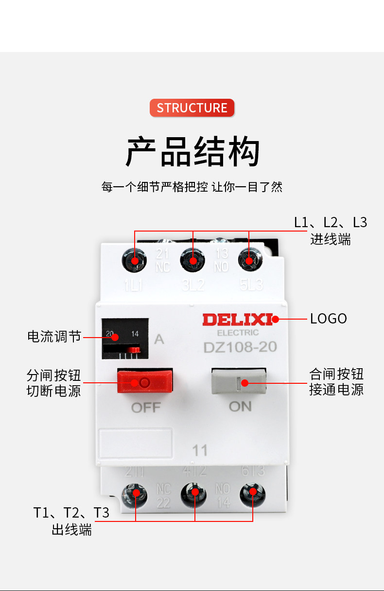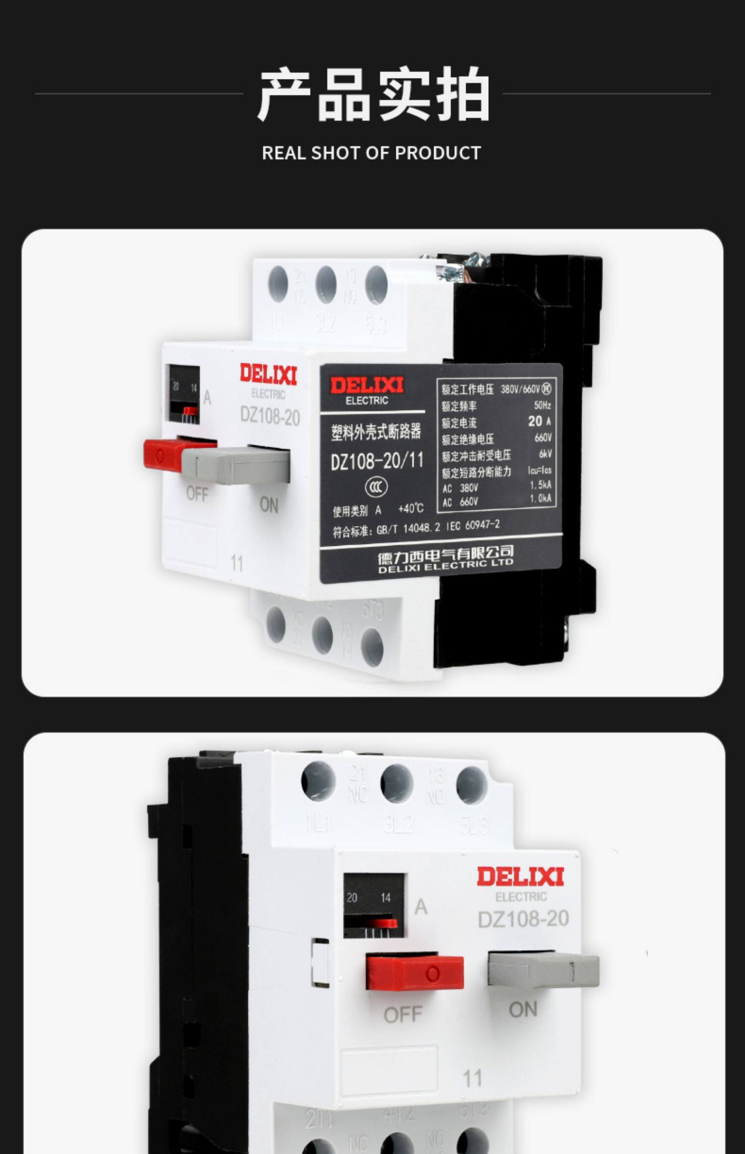 Delixi 10A Motor Dz108-20 2.5A3.2A4A5A6.3A 8A12.5A20A Circuit Breaker 3Ve1